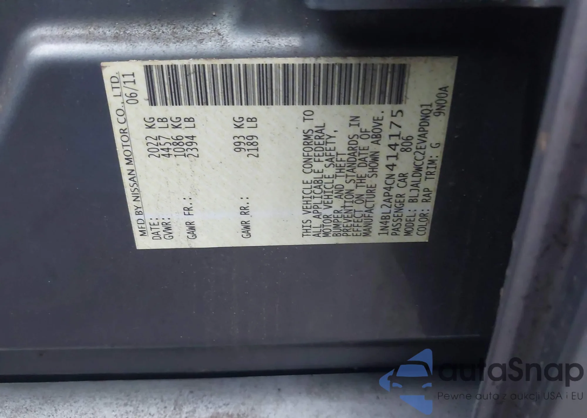 VIN: 1N4BL2AP4CN414175