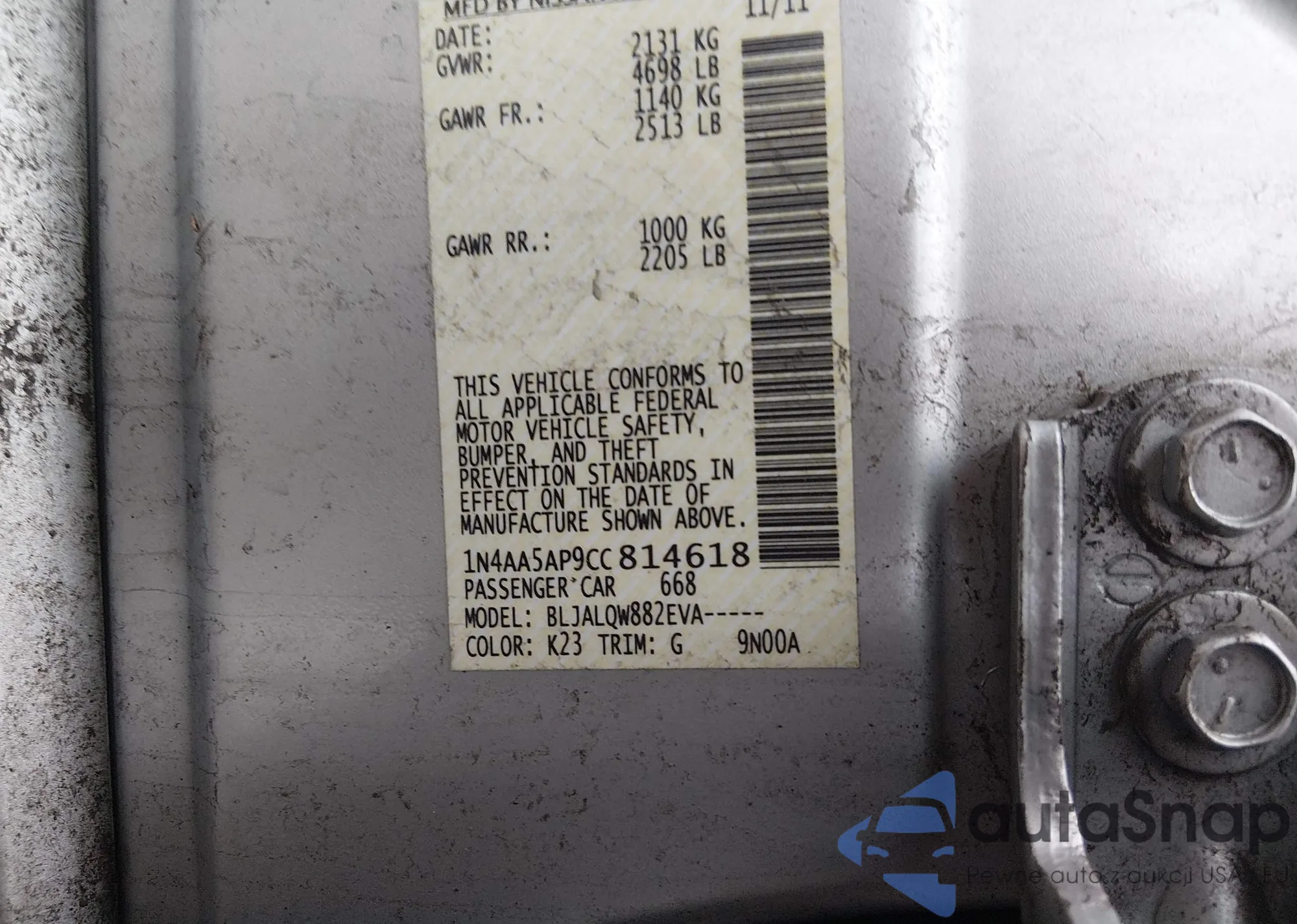 VIN: 1N4AA5AP9CC814618