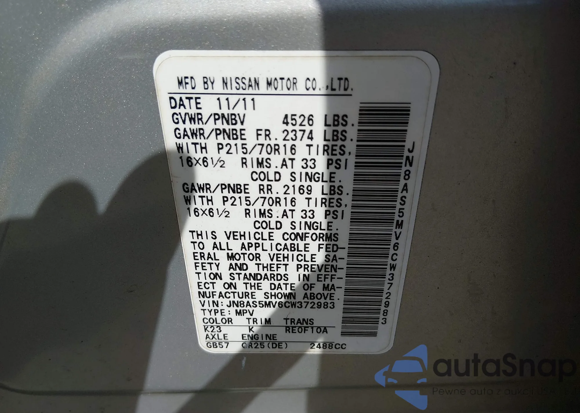 VIN: JN8AS5MV6CW372983