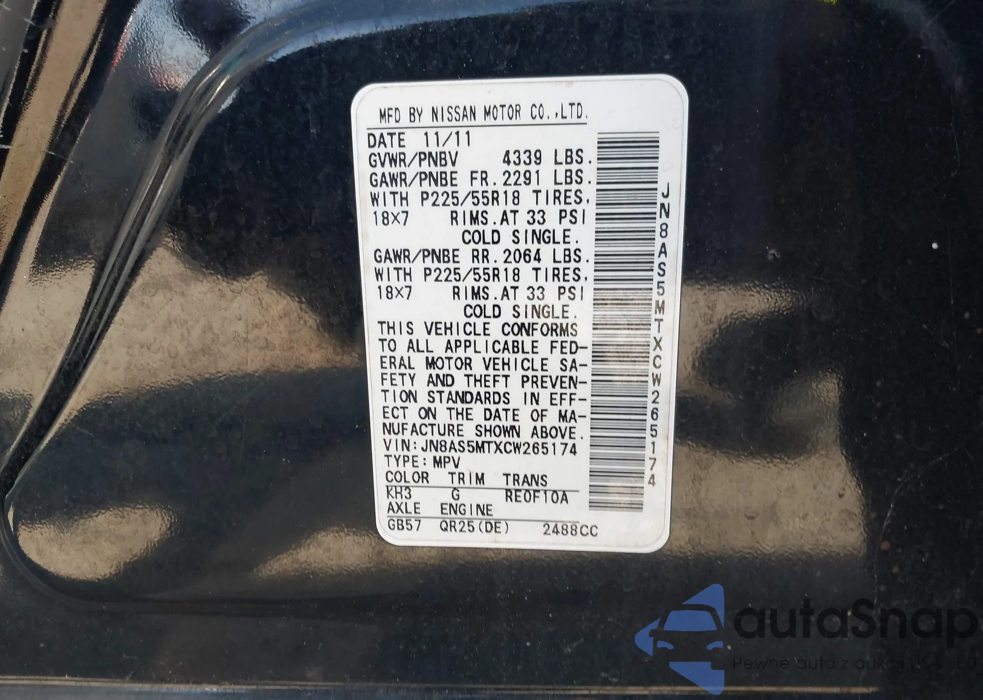 VIN: JN8AS5MTXCW265174