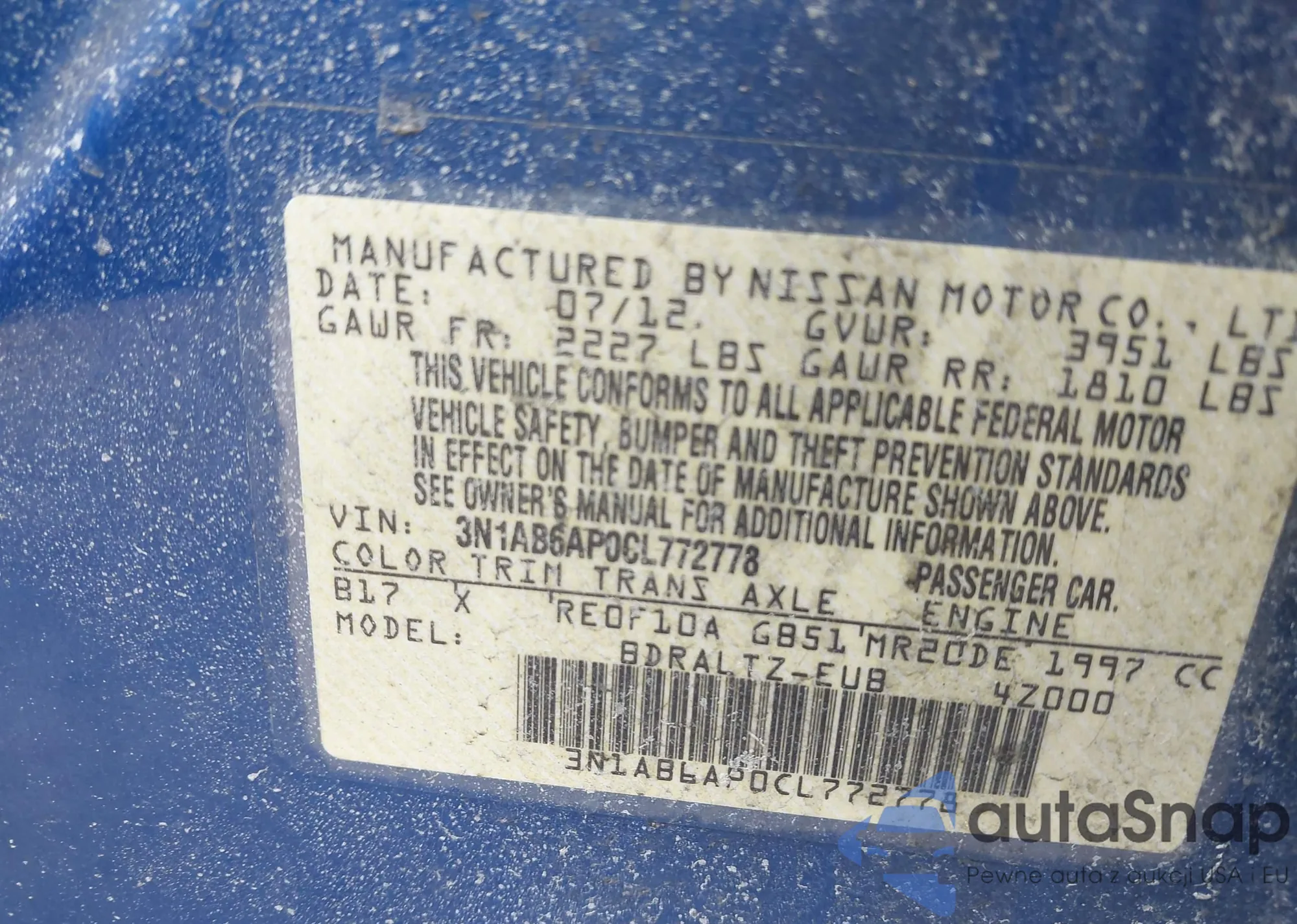 Samochód Nissan Sentra 2012 (VIN 3N1AB6AP0CL772778) sprzedaje go niezweryfikowany sprzedawca. Zalecamy raport Carfax i potwierdzenie możliwości rejestracji pojazdu przed zakupem.
