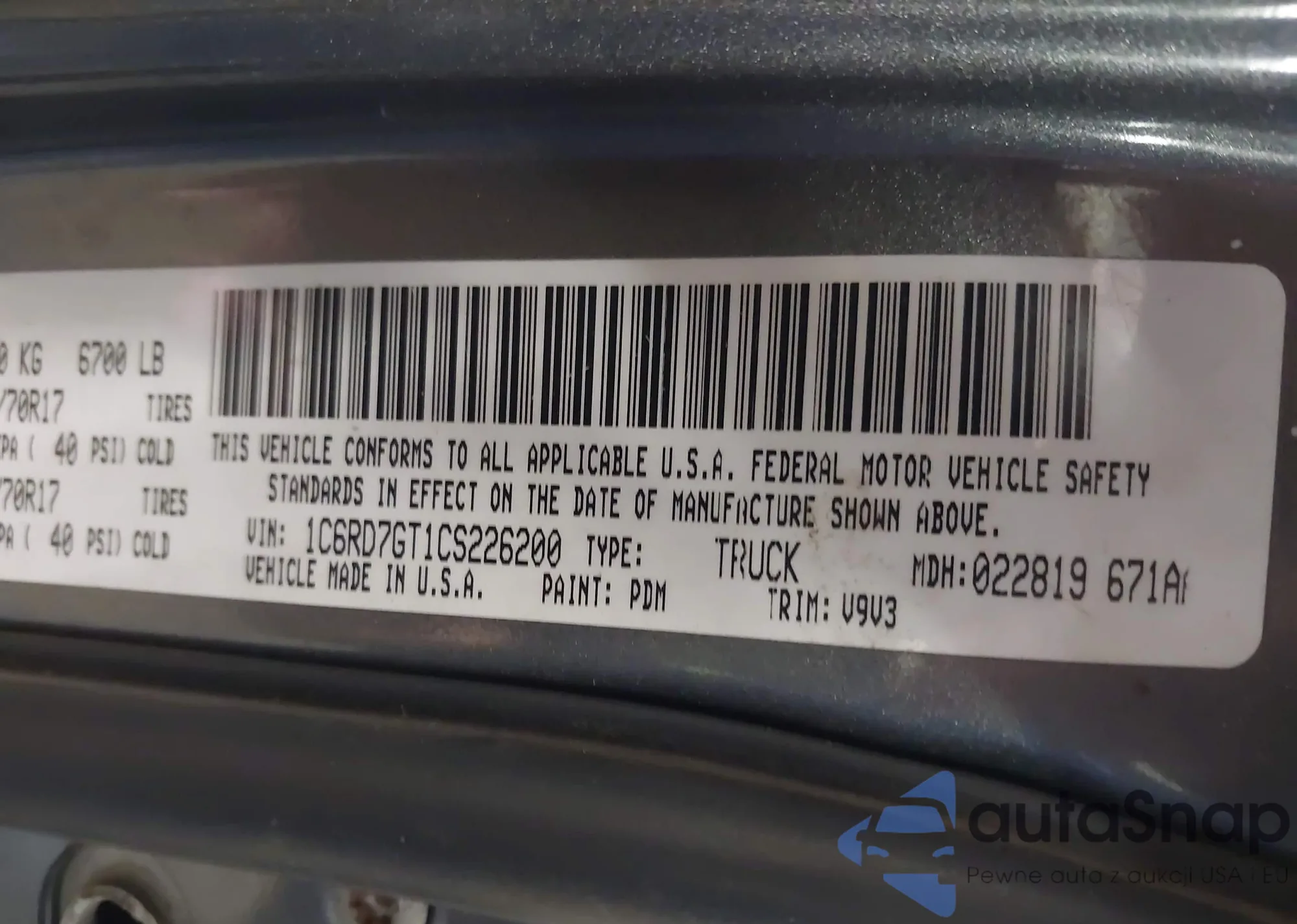 Samochód RAM 1500 2012 (VIN 1C6RD7GT1CS226200) nie był wcześniej licytowany. Dokumenty są czyste, przebieg odpowiada lub jest niższy niż średnia rynku. Sprzedaje go firma ubezpieczeniowa – polecamy zakup. Dostawa do portu zajmie ok. 6–8 tygodni.