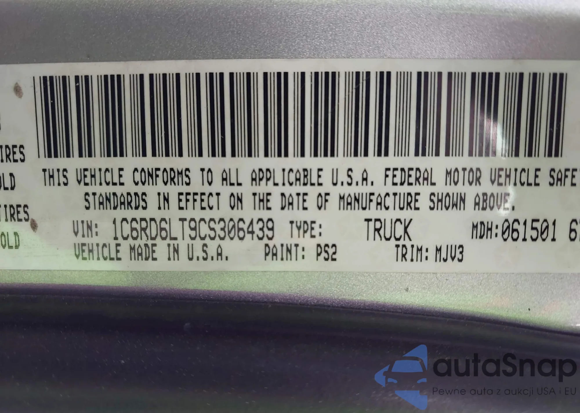 Samochód RAM 1500 2012 (VIN 1C6RD6LT9CS306439) nie był wcześniej licytowany. Dokumenty są czyste, przebieg odpowiada lub jest niższy niż średnia rynku. Sprzedaje go firma ubezpieczeniowa – polecamy zakup. Dostawa do portu zajmie ok. 6–8 tygodni.