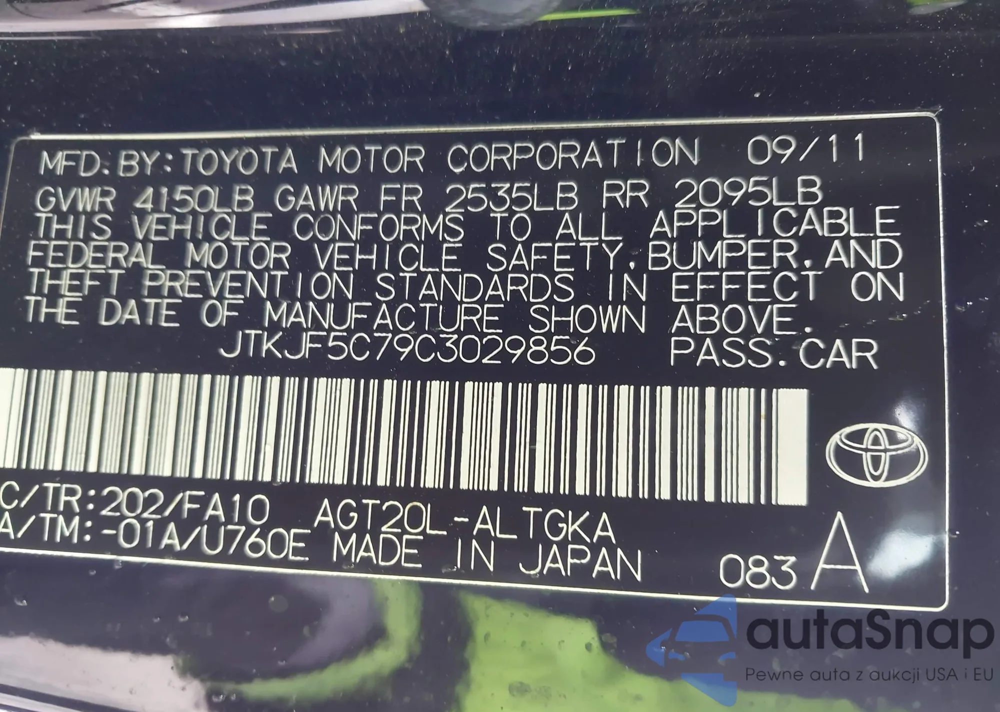 Samochód Scion tC 2012 (VIN JTKJF5C79C3029856) nie był wcześniej licytowany. Dokumenty są czyste, przebieg odpowiada lub jest niższy niż średnia rynku. Sprzedaje go firma ubezpieczeniowa – polecamy zakup. Dostawa do portu zajmie ok. 6–8 tygodni.