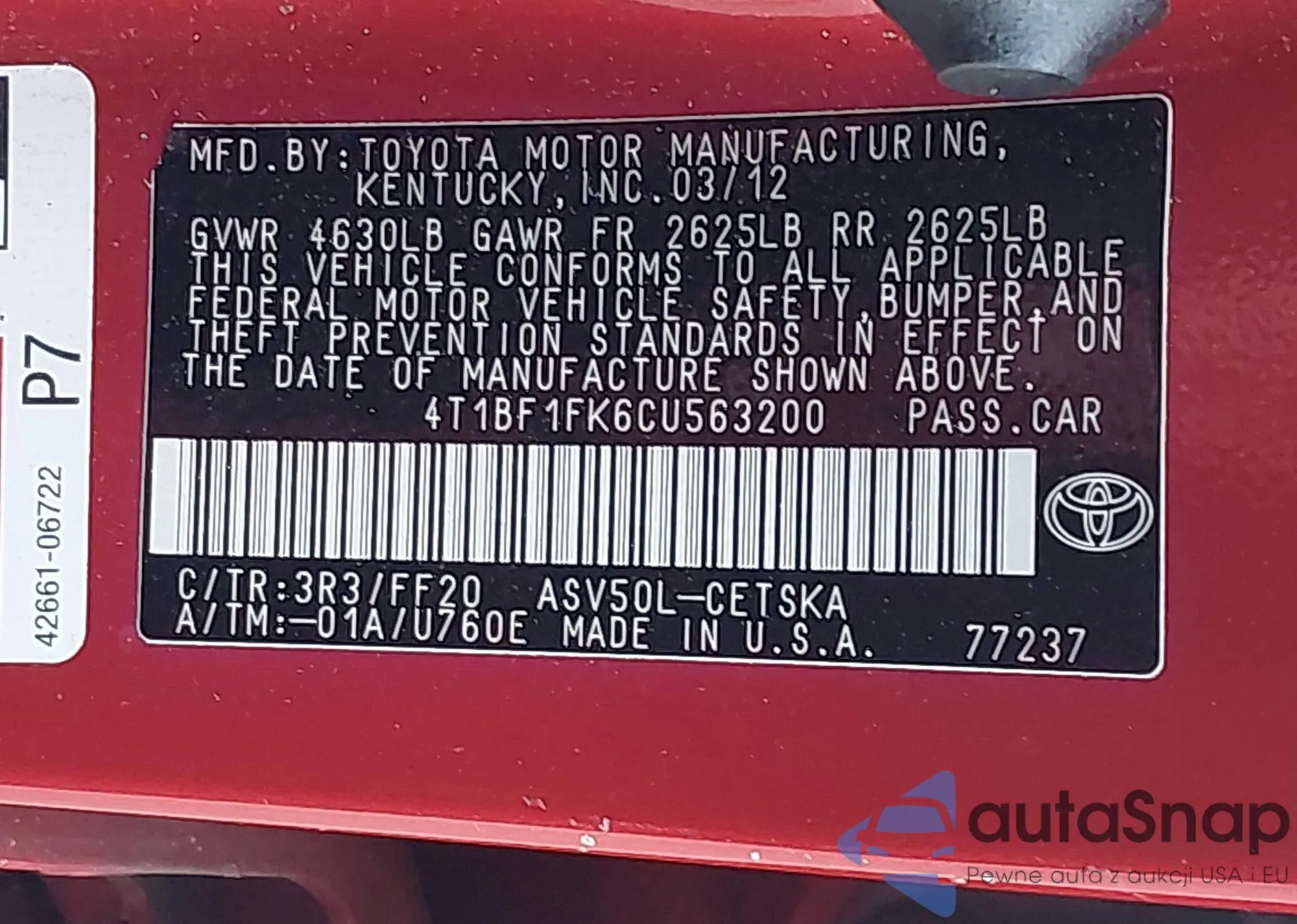 VIN: 4T1BF1FK6CU563200