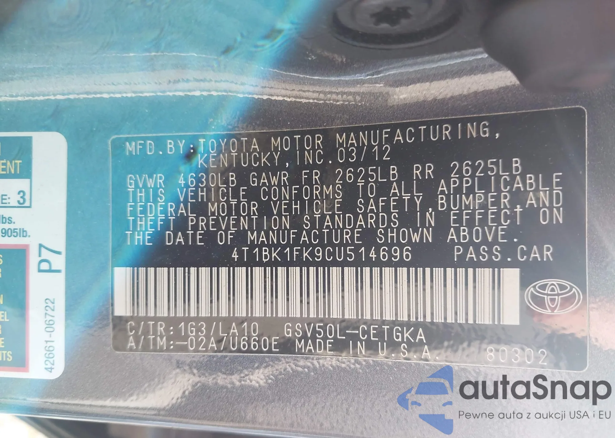 VIN: 4T1BK1FK9CU514696