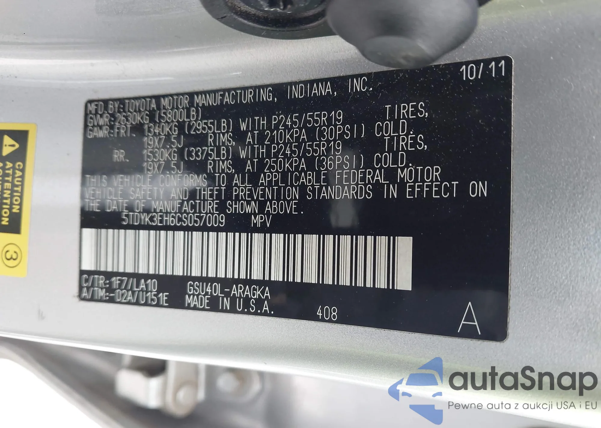 Samochód Toyota Highlander 2012 (VIN 5TDYK3EH6CS057009) nie był wcześniej licytowany. Dokumenty są czyste, przebieg odpowiada lub jest niższy niż średnia rynku. Sprzedaje go firma ubezpieczeniowa – polecamy zakup. Dostawa do portu zajmie ok. 6–8 tygodni.