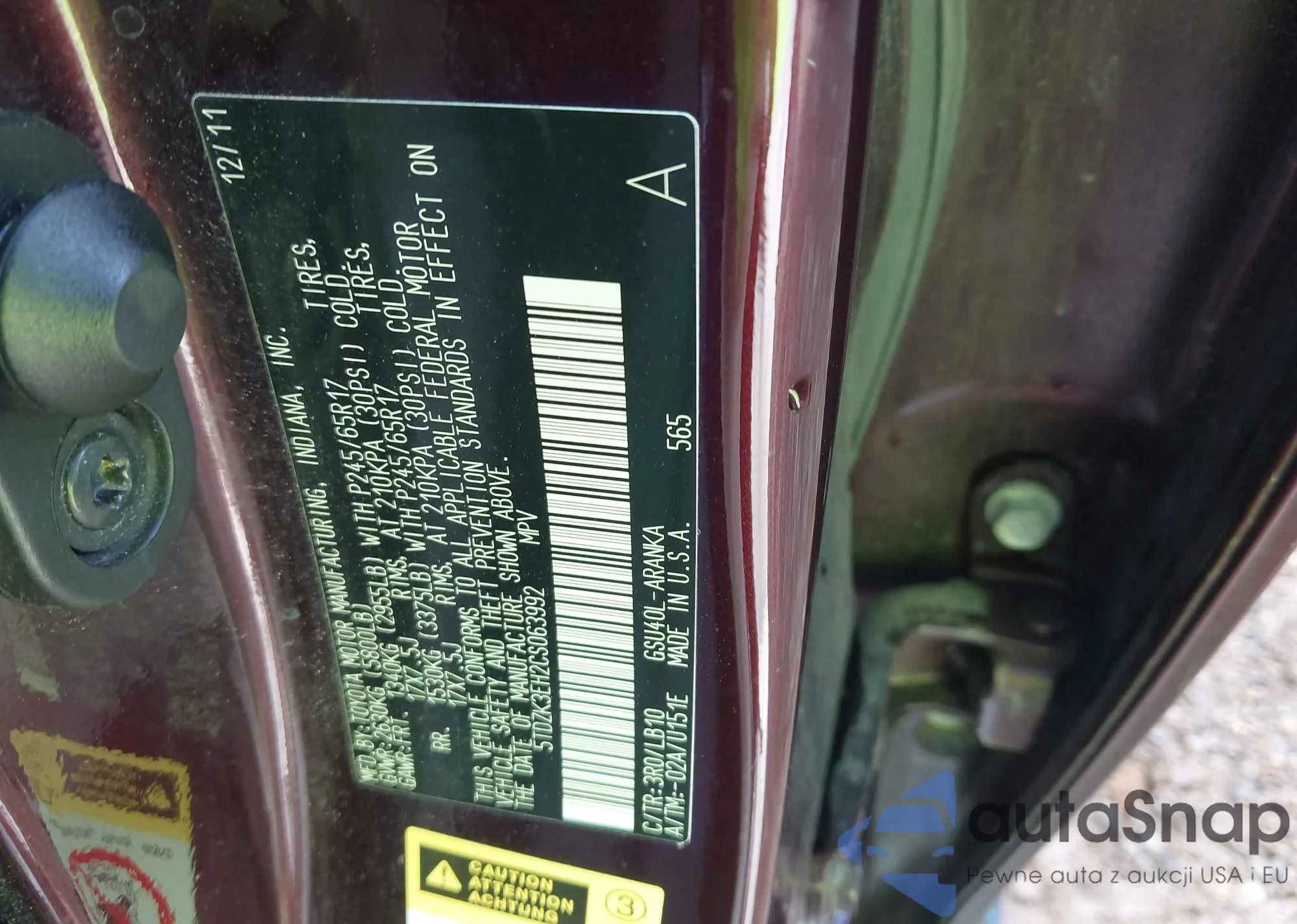 • VIN: 5TDZK3EH2CS063992
