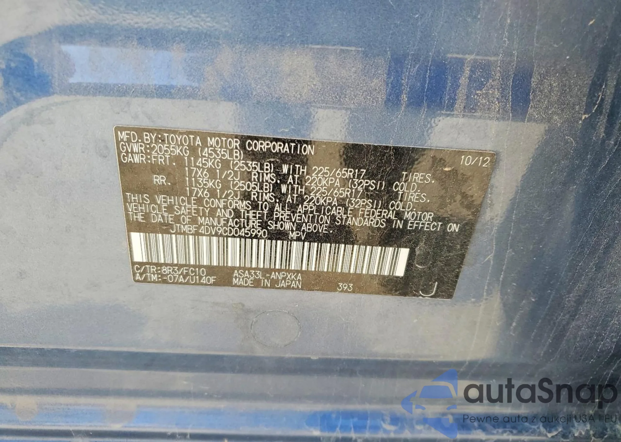VIN: JTMBF4DV9CD045990