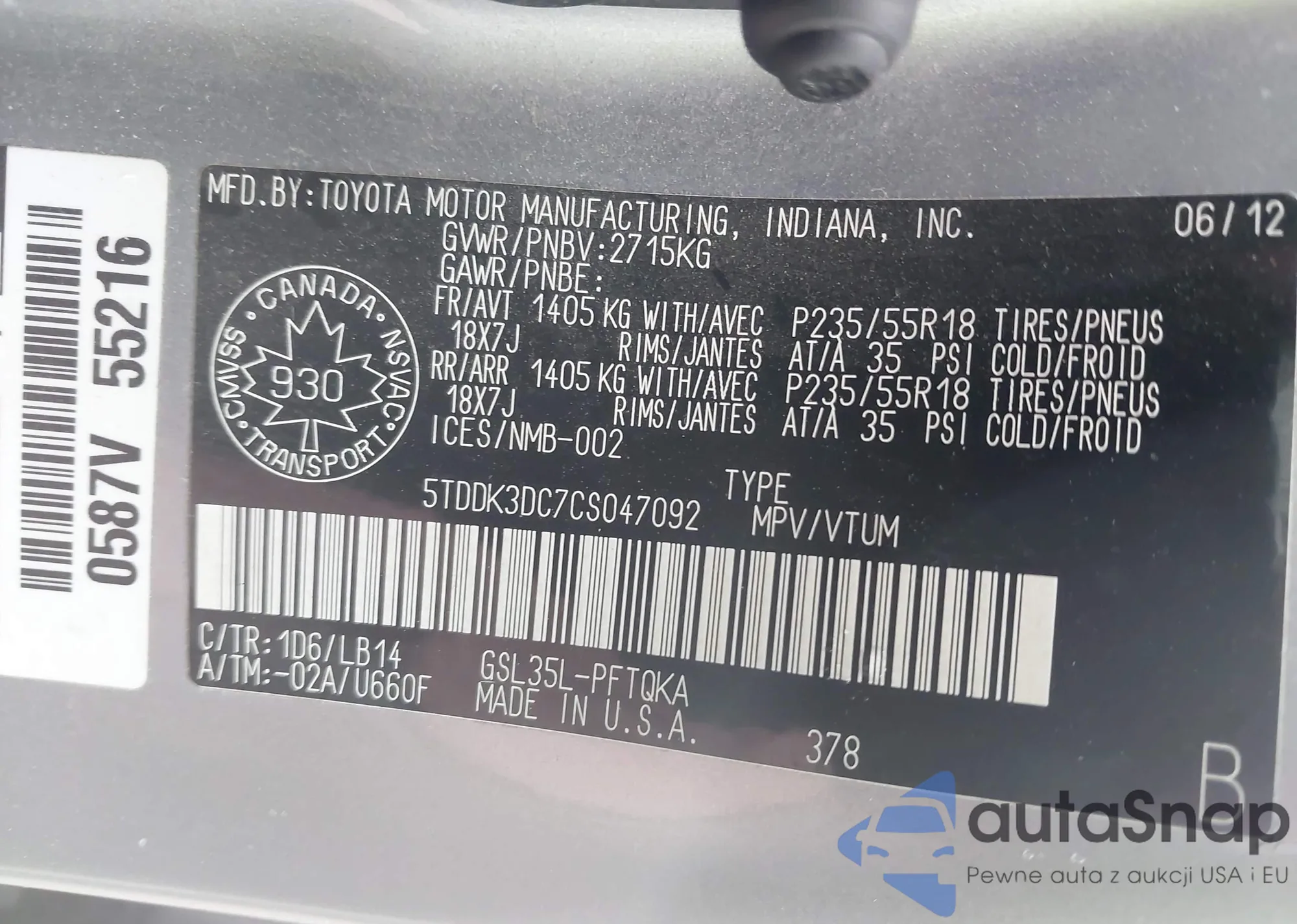 Samochód Toyota Sienna 2012 (VIN 5TDDK3DC7CS047092) nie był wcześniej licytowany. Dokumenty są czyste, przebieg odpowiada lub jest niższy niż średnia rynku. Sprzedaje go firma ubezpieczeniowa – polecamy zakup. Dostawa do portu zajmie ok. 6–8 tygodni.