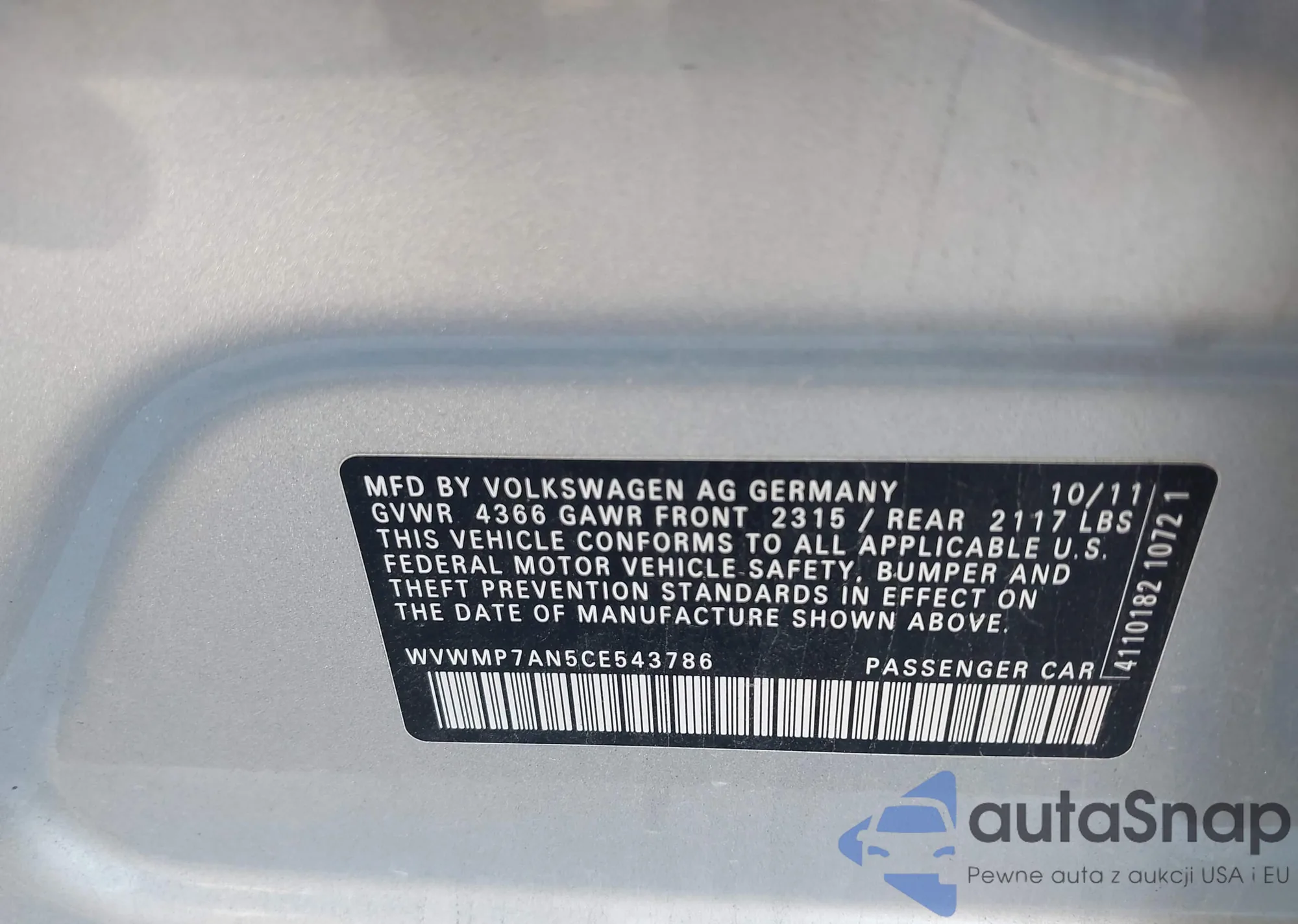 Samochód Volkswagen Passat CC 2012 (VIN WVWMP7AN5CE543786) nie był wcześniej licytowany. Dokumenty są czyste, przebieg odpowiada lub jest niższy niż średnia rynku. Sprzedaje go firma ubezpieczeniowa – polecamy zakup. Dostawa do portu zajmie ok. 6–8 tygodni.