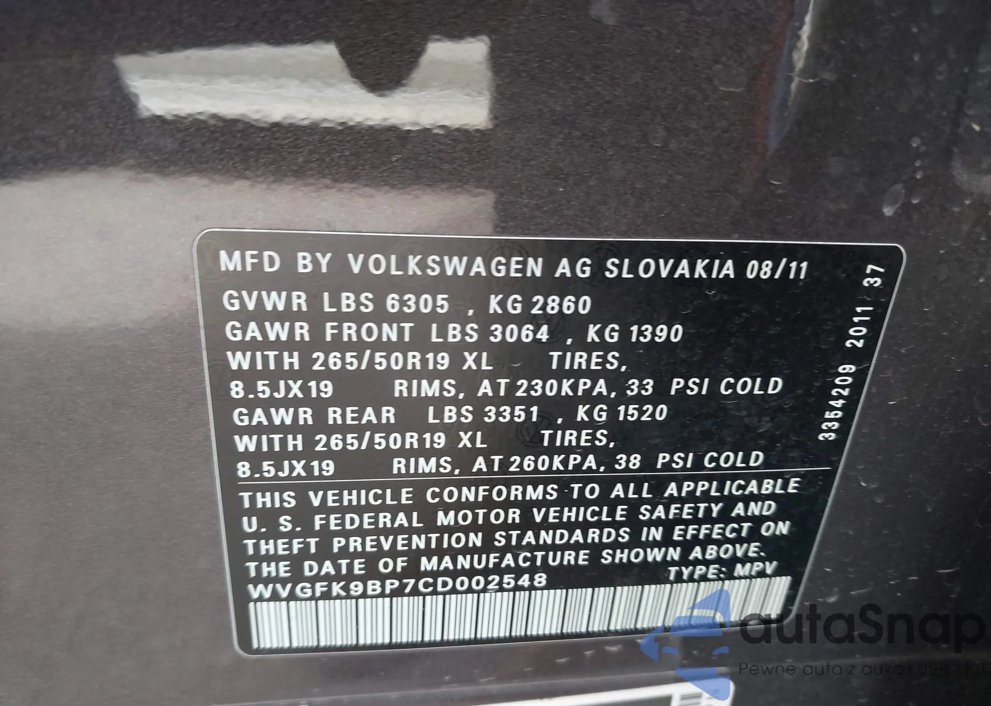 VIN: WVGFK9BP7CD002548