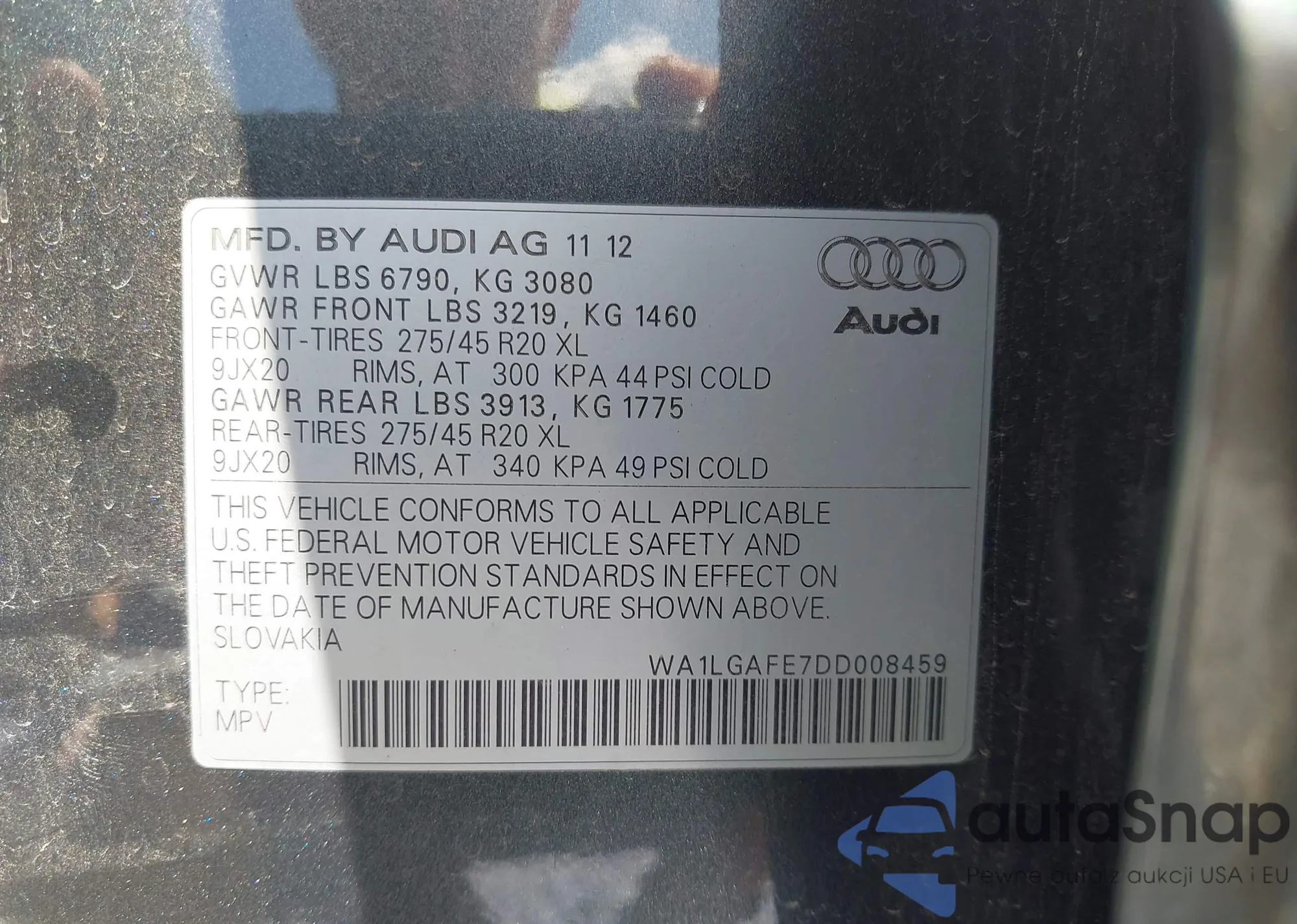 Samochód Audi Q7 2013 (VIN WA1LGAFE7DD008459) nie był wcześniej licytowany. Dokumenty są czyste, przebieg odpowiada lub jest niższy niż średnia rynku. Sprzedaje go firma ubezpieczeniowa – polecamy zakup. Dostawa do portu zajmie ok. 6–8 tygodni.