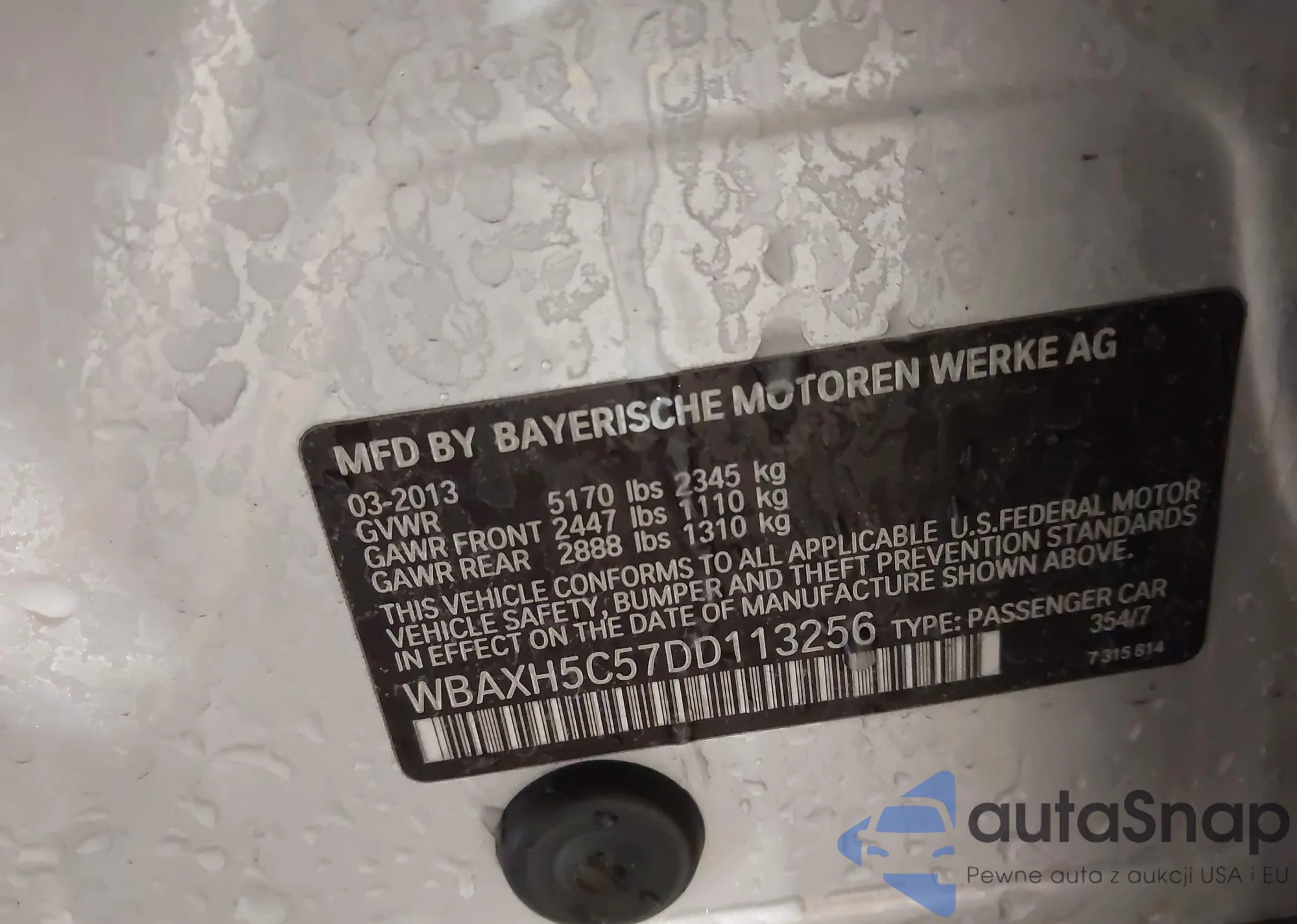 Samochód BMW 5er 2013 (VIN WBAXH5C57DD113256) nie był wcześniej licytowany. Dokumenty są czyste, przebieg odpowiada lub jest niższy niż średnia rynku. Sprzedaje go firma ubezpieczeniowa – polecamy zakup. Dostawa do portu zajmie ok. 6–8 tygodni.