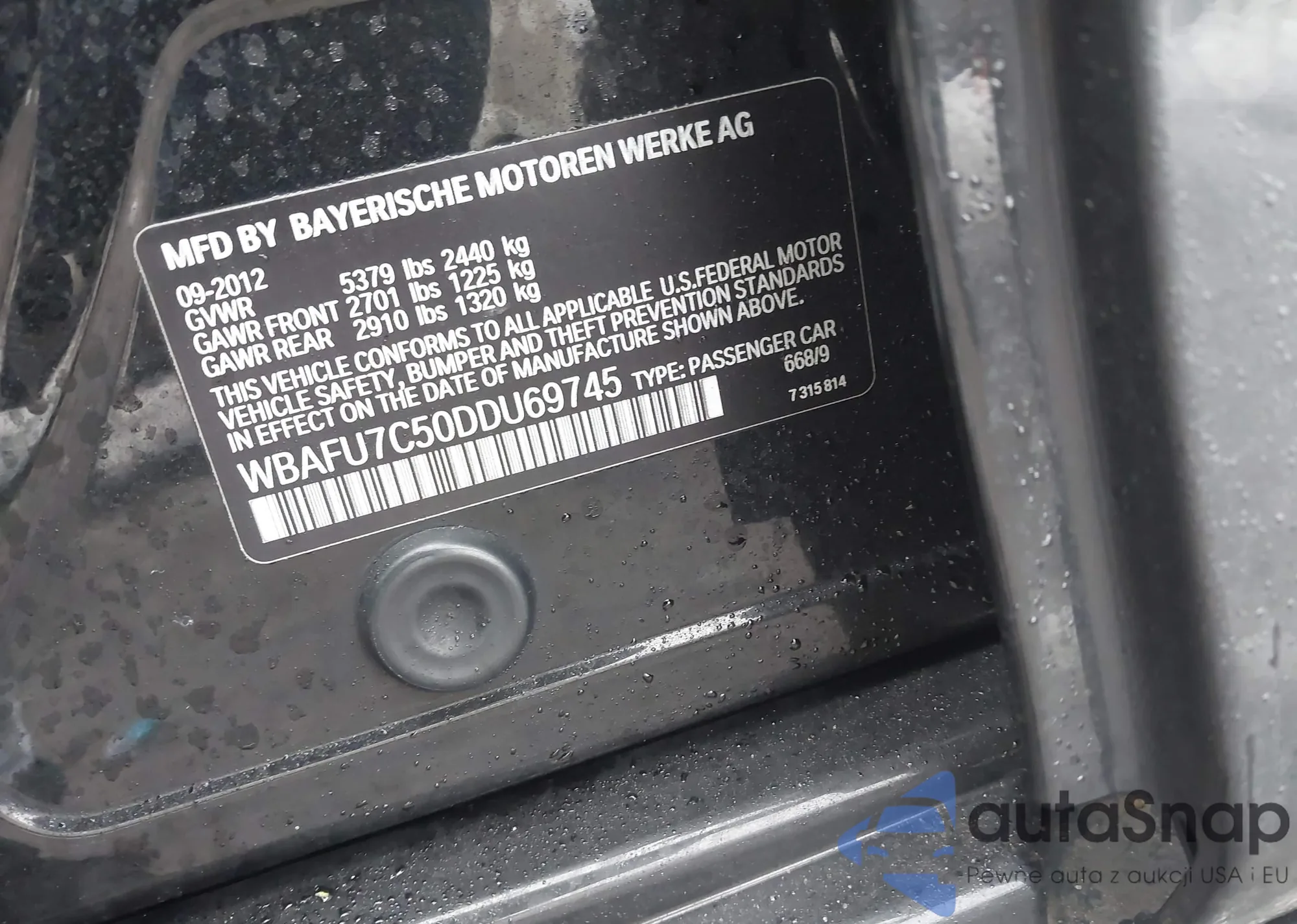 Samochód BMW 5er 2013 (VIN WBAFU7C50DDU69745) nie był wcześniej licytowany. Dokumenty są czyste, przebieg odpowiada lub jest niższy niż średnia rynku. Sprzedaje go firma ubezpieczeniowa – polecamy zakup. Dostawa do portu zajmie ok. 6–8 tygodni.
