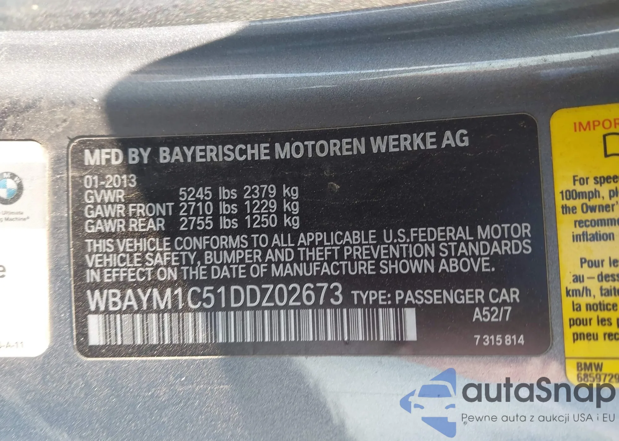 • VIN: WBAYM1C51DDZ02673
