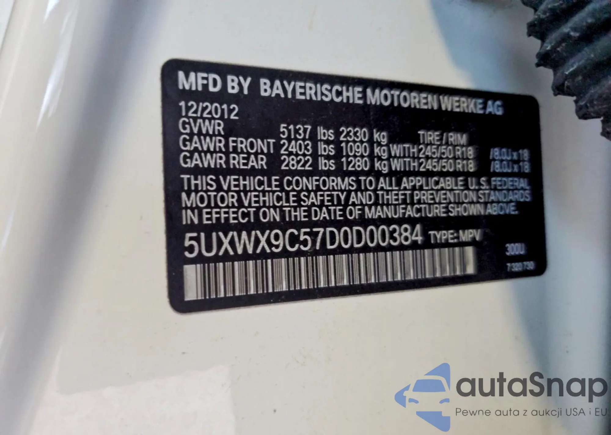 • VIN: 5UXWX9C57D0D00384