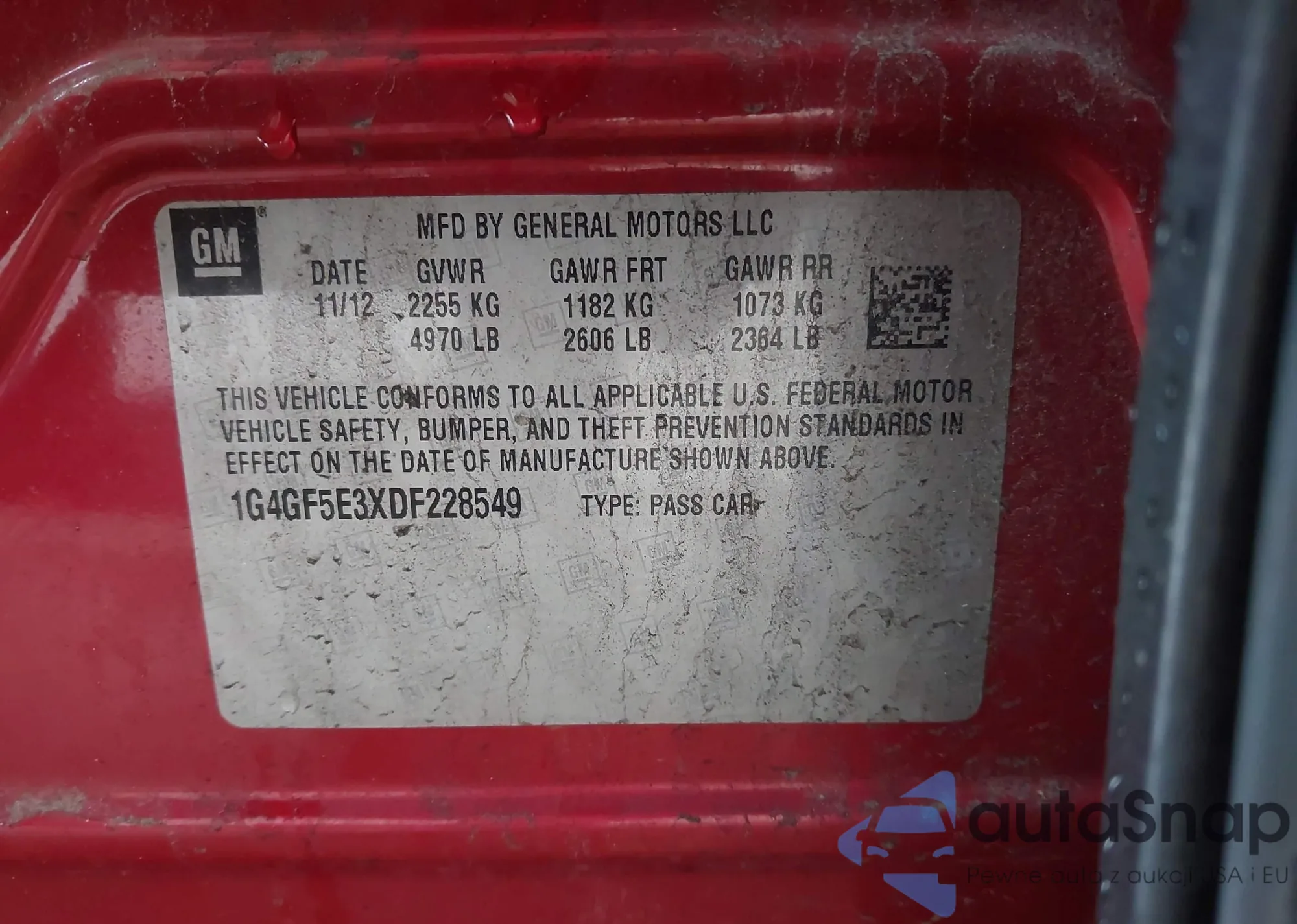 Samochód Buick LaCrosse 2013 (VIN 1G4GF5E3XDF228549) sprzedaje go niezweryfikowany sprzedawca. Zalecamy raport Carfax i potwierdzenie możliwości rejestracji pojazdu przed zakupem.