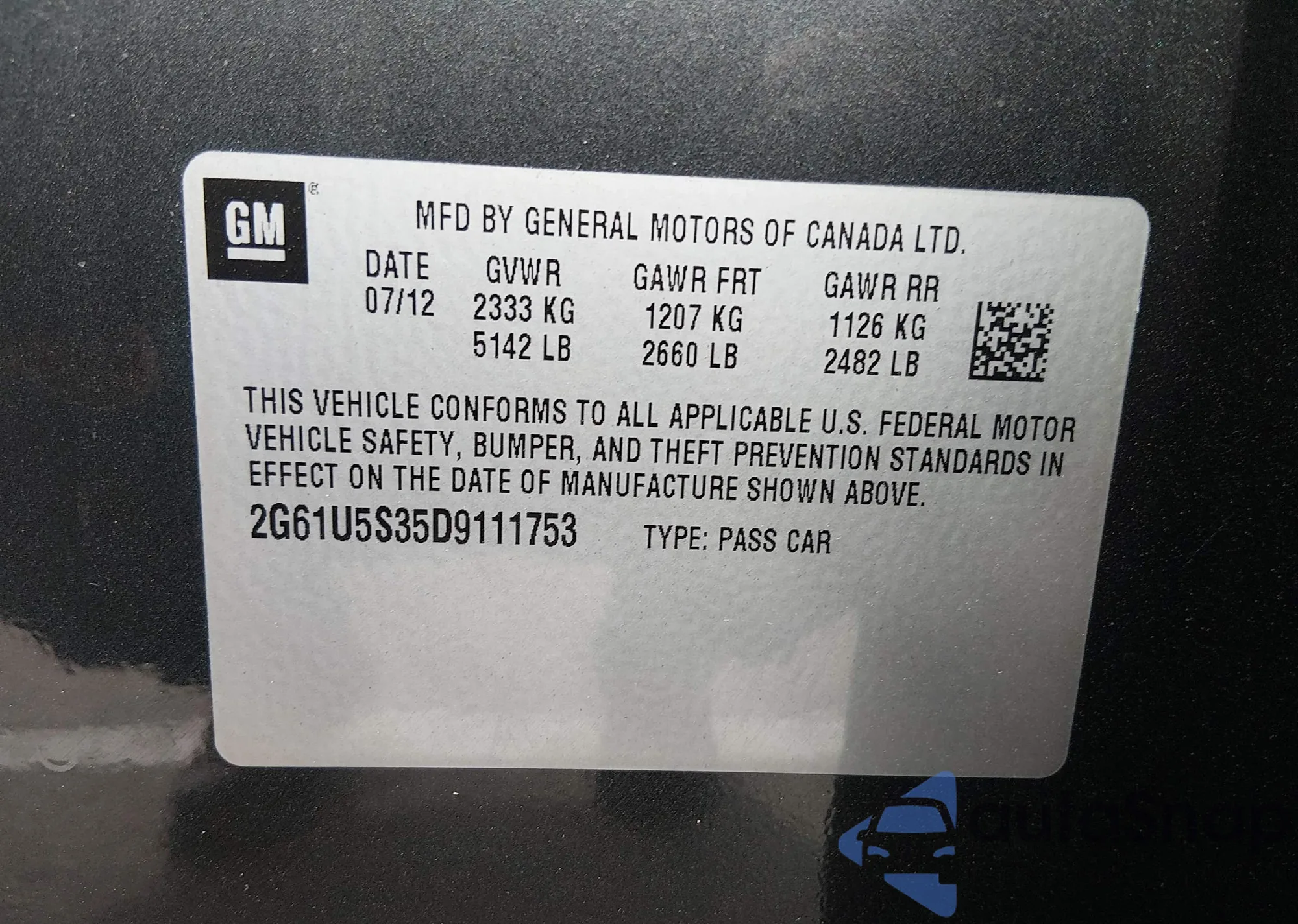 • VIN: 2G61U5S35D9111753