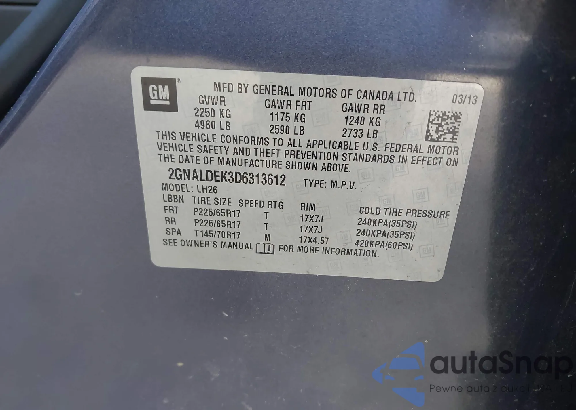 VIN: 2GNALDEK3D6313612