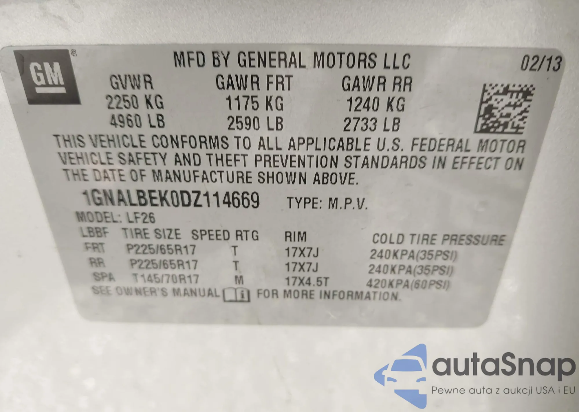 VIN: 1GNALBEK0DZ114669