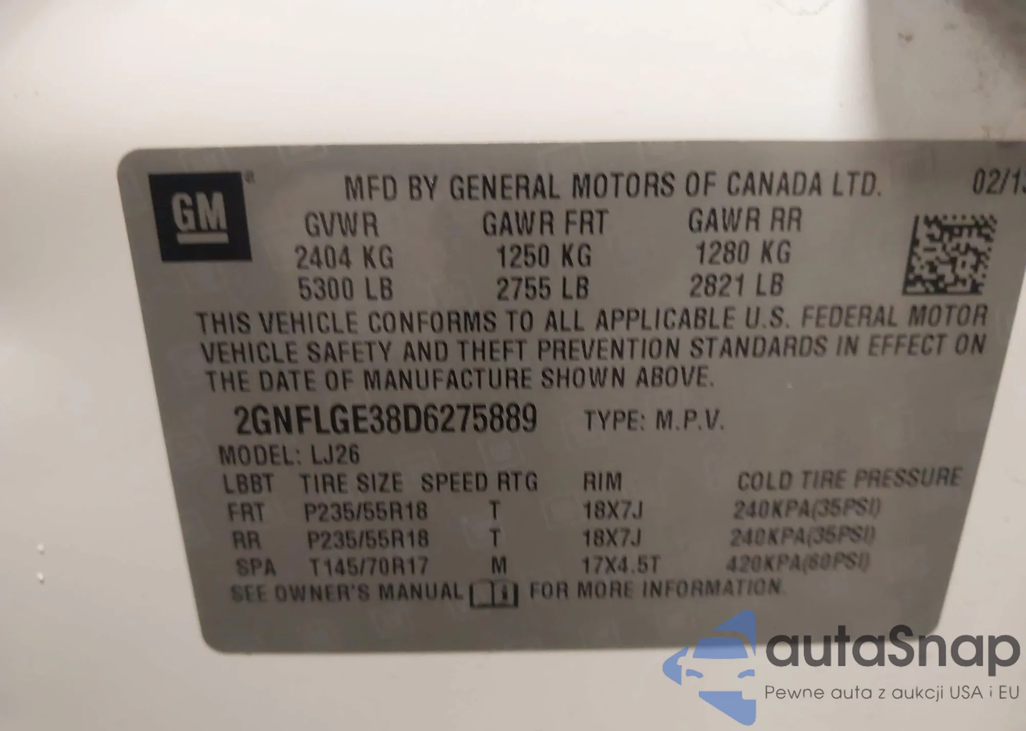 VIN: 2GNFLGE38D6275889