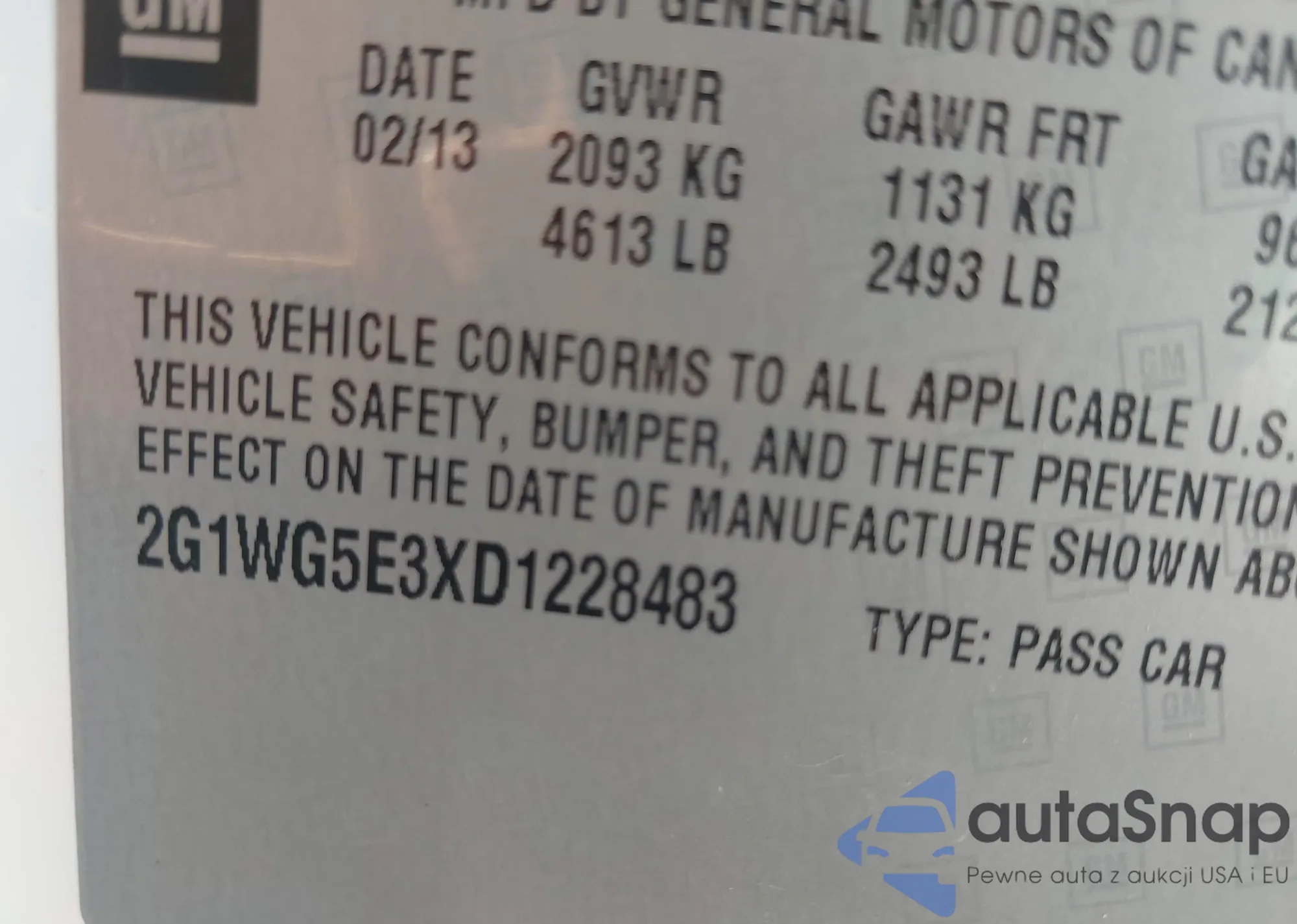 • VIN: 2G1WG5E3XD1228483
