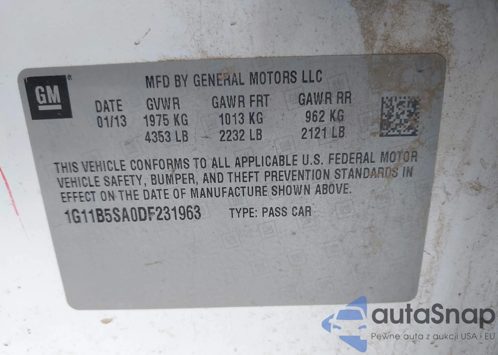 • VIN: 1G11B5SA0DF231963