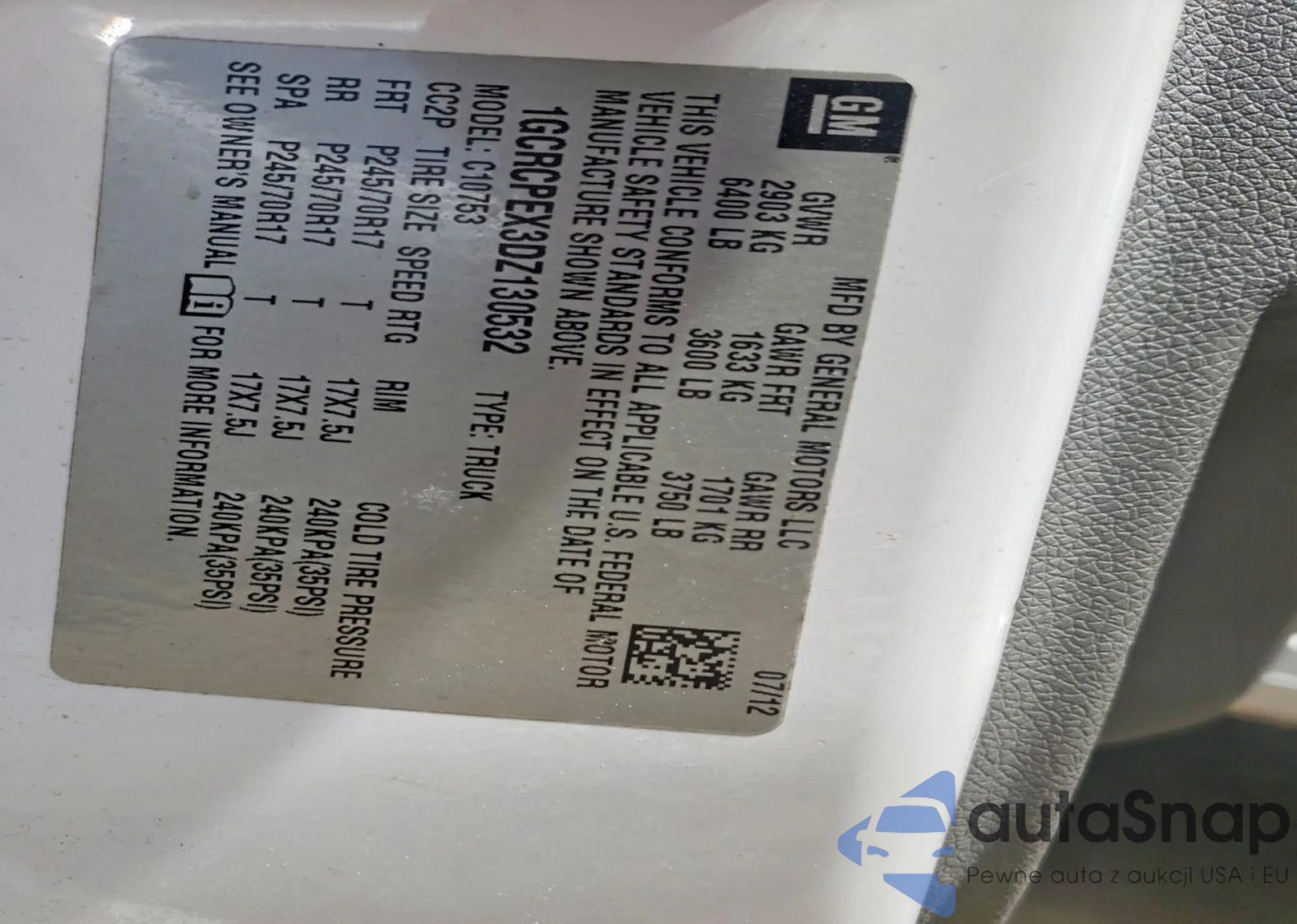 VIN: 1GCRCPEX3DZ130532