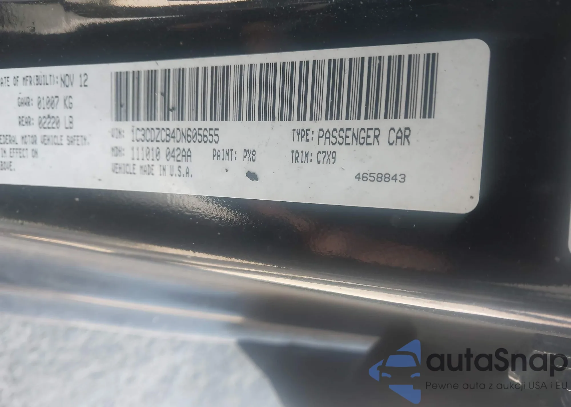 • VIN: 1C3CDZCB4DN605655