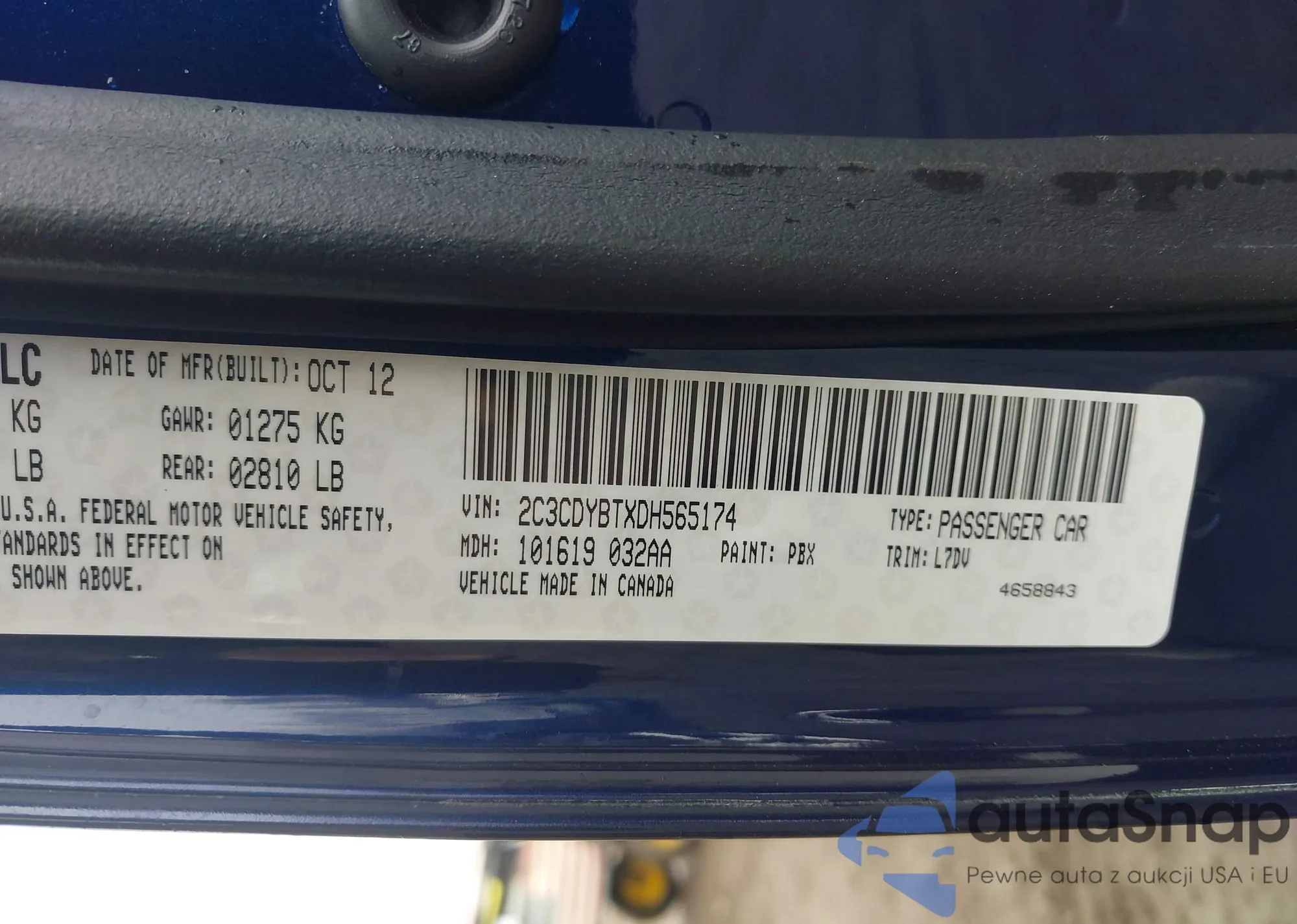 • VIN: 2C3CDYBTXDH565174