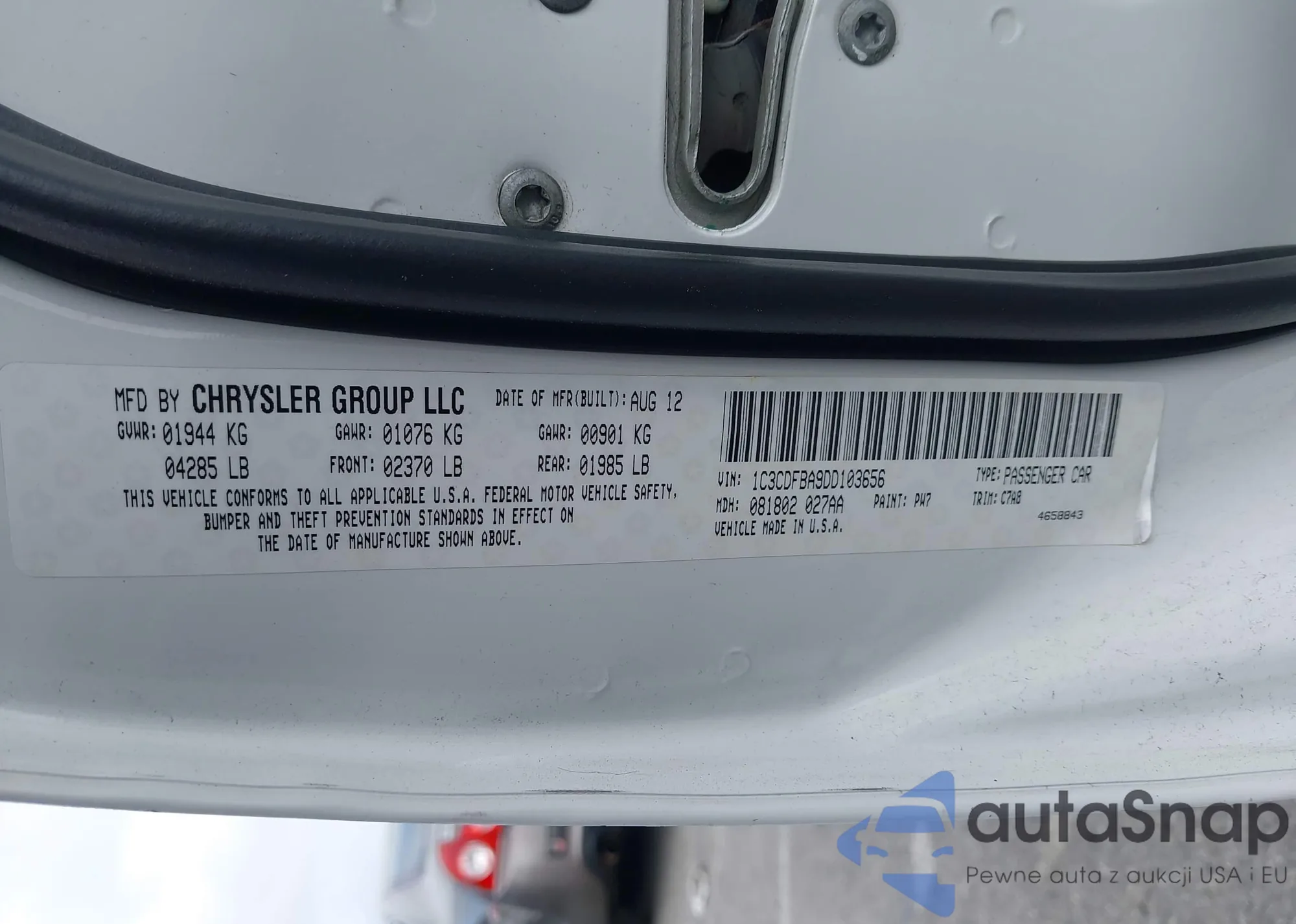 VIN: 1C3CDFBA9DD103656