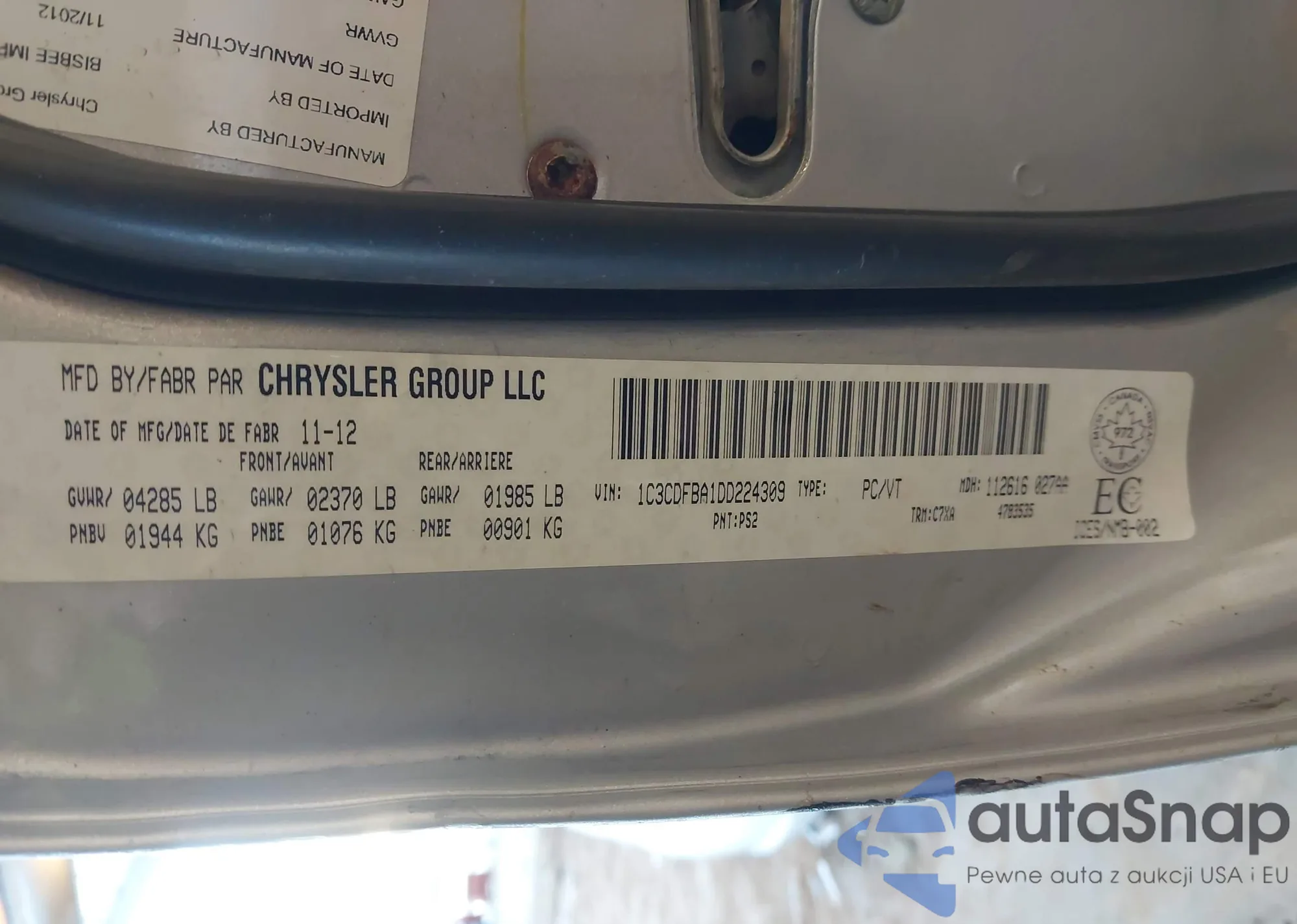 VIN: 1C3CDFBA1DD224309