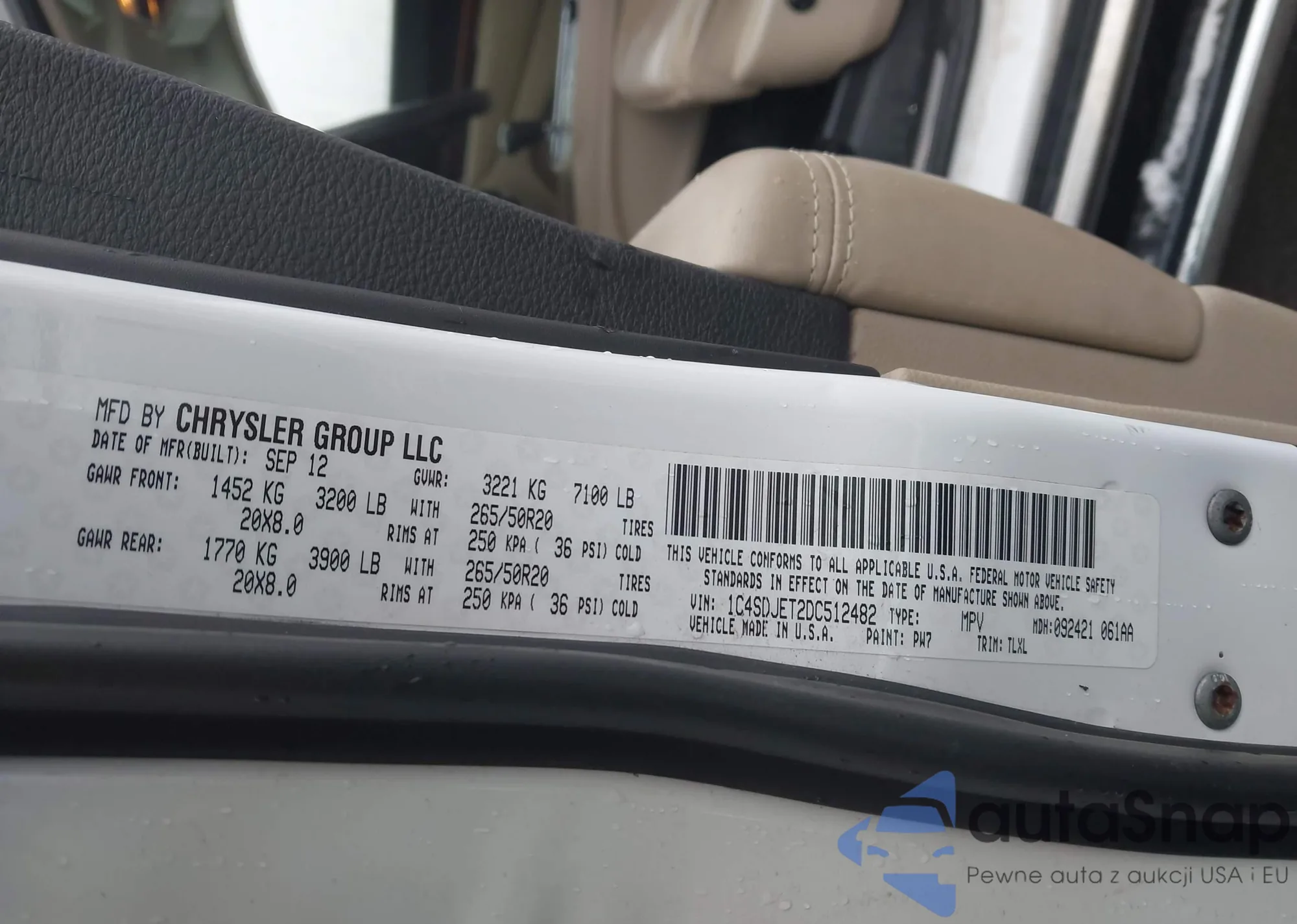 Samochód Dodge Durango 2013 (VIN 1C4SDJET2DC512482) nie był wcześniej licytowany. Dokumenty są czyste, przebieg odpowiada lub jest niższy niż średnia rynku. Sprzedaje go firma ubezpieczeniowa – polecamy zakup. Dostawa do portu zajmie ok. 6–8 tygodni.