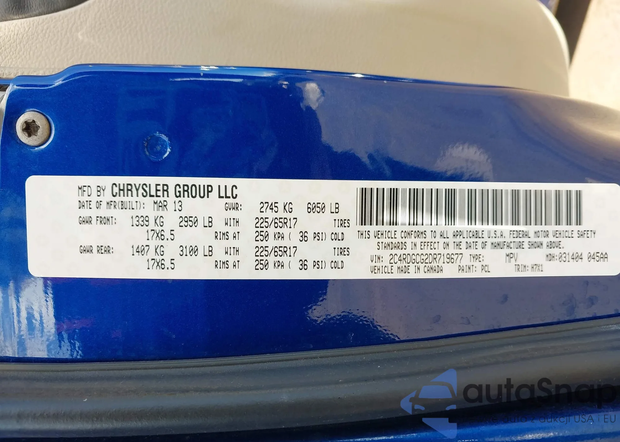 • VIN: 2C4RDGCG2DR719677