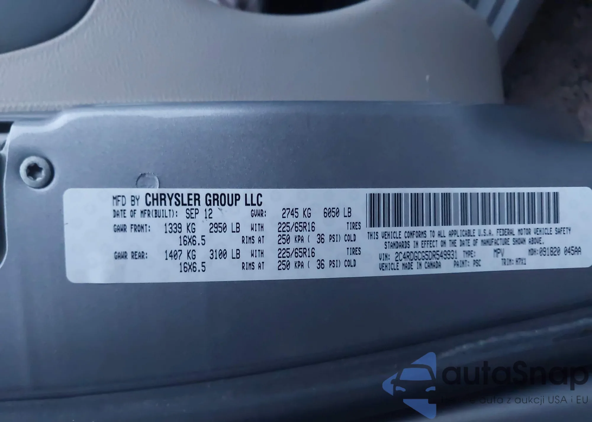 VIN: 2C4RDGCG5DR549931