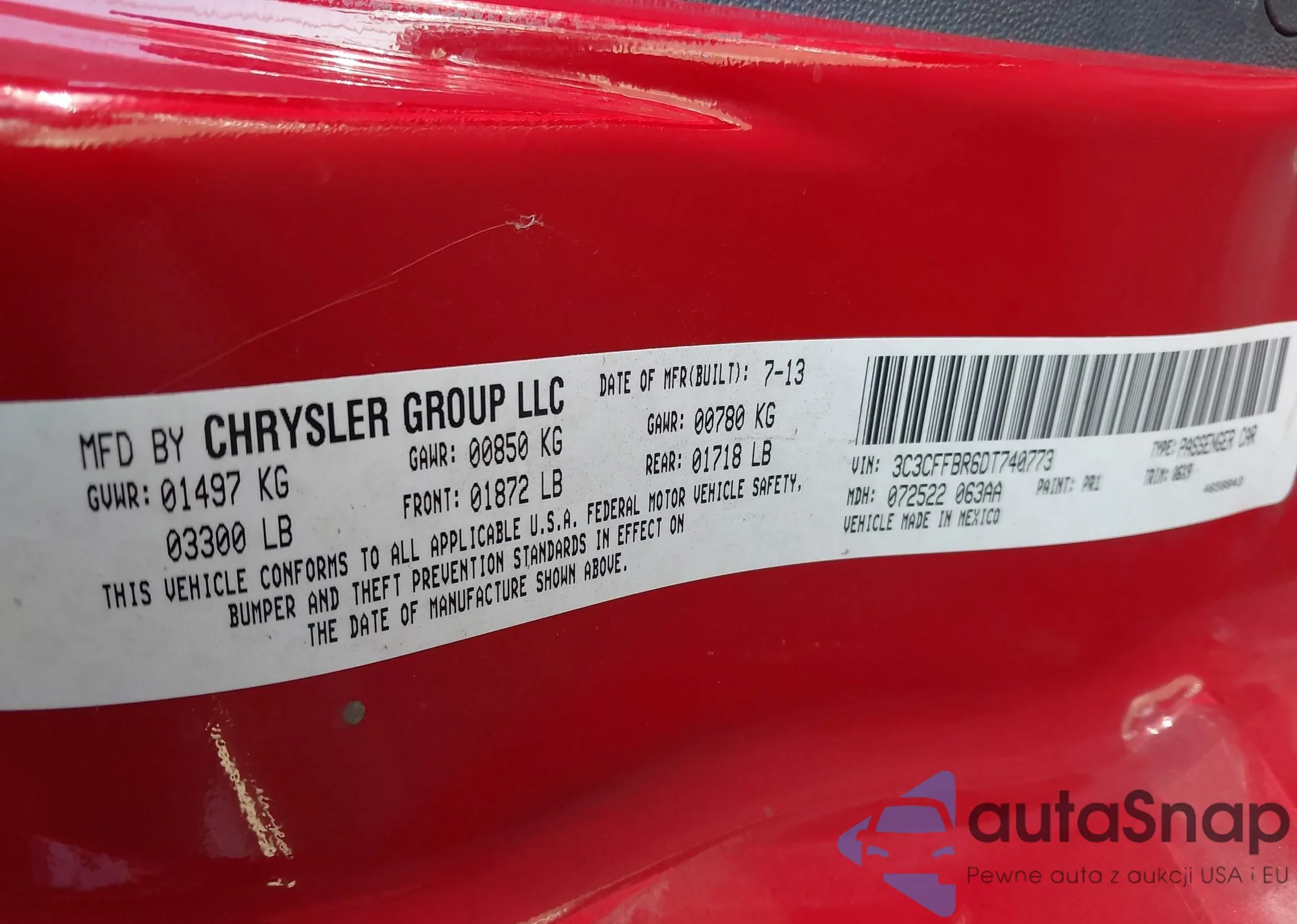 • VIN: 3C3CFFBR6DT740773