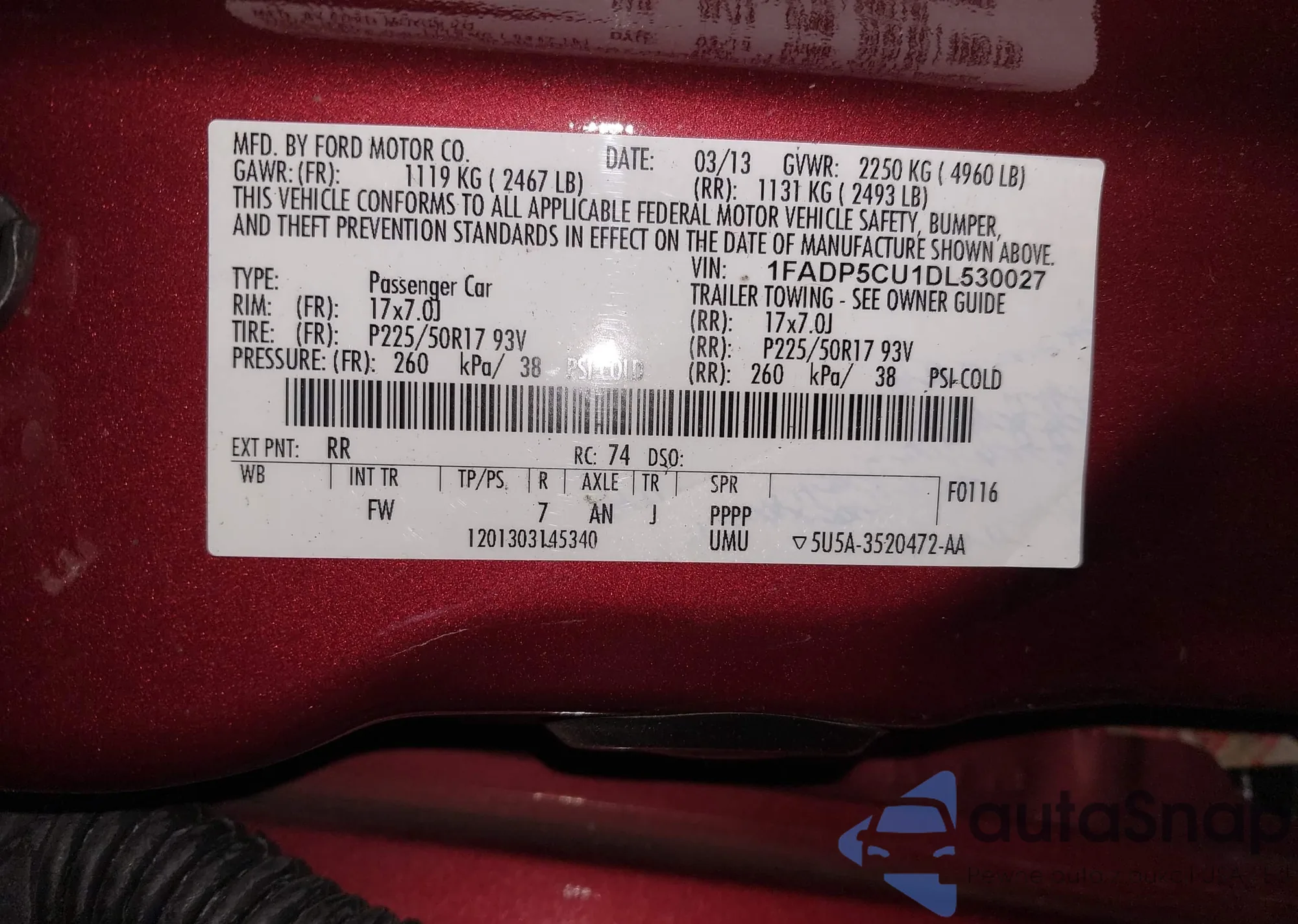 VIN: 1FADP5CU1DL530027