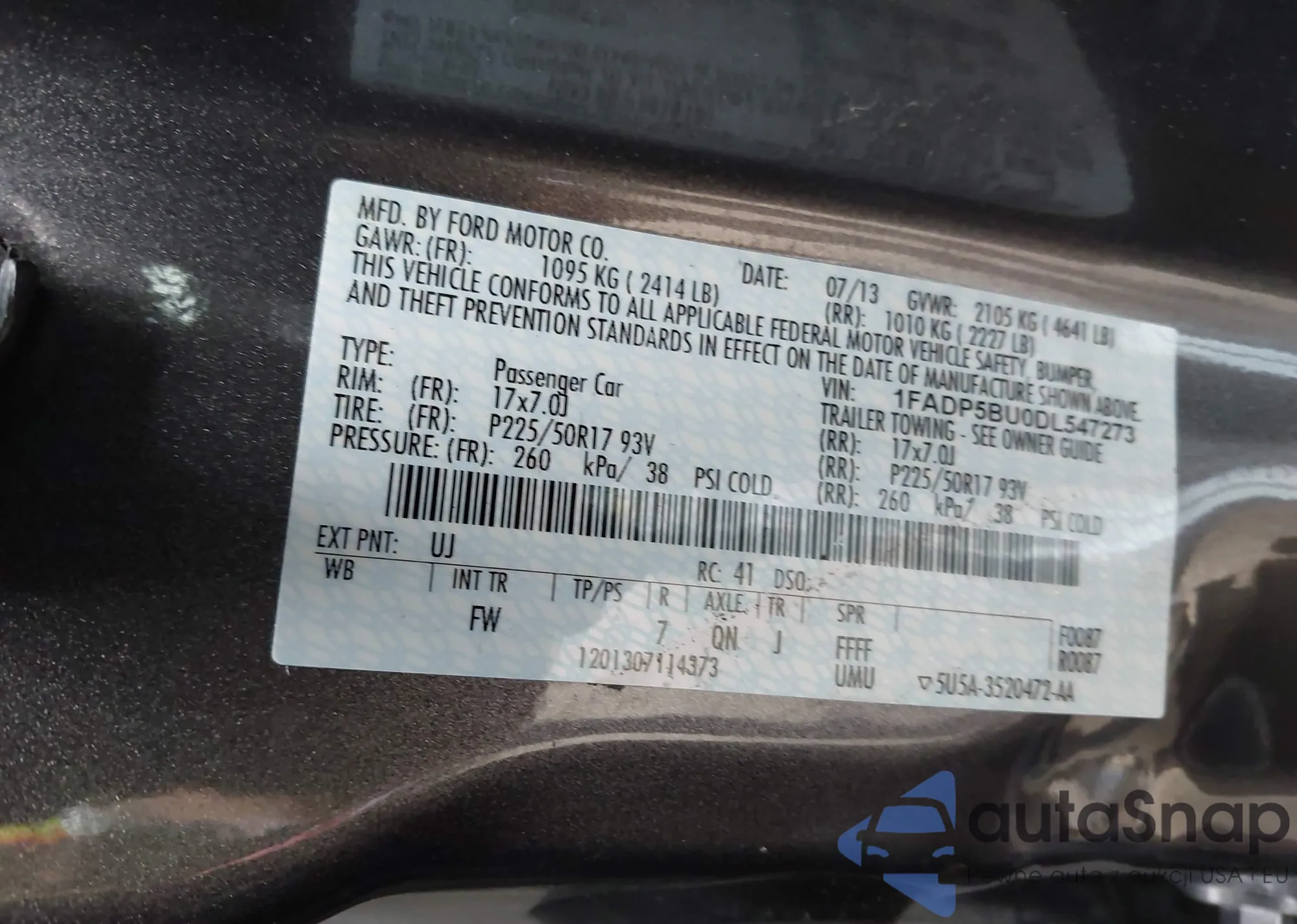 VIN: 1FADP5BU0DL547273