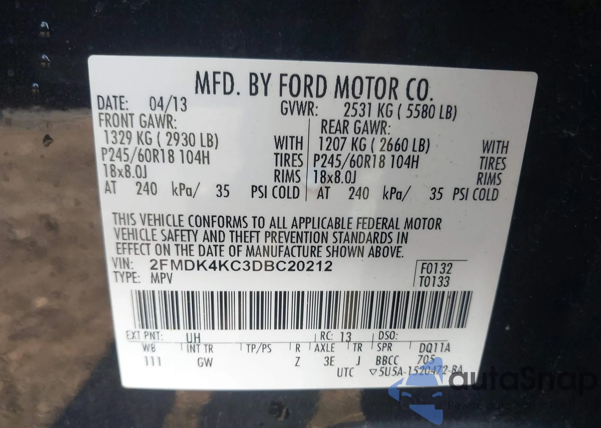 Samochód Ford Edge 2013 (VIN 2FMDK4KC3DBC20212) nie był wcześniej licytowany. Dokumenty są czyste, przebieg odpowiada lub jest niższy niż średnia rynku. Sprzedaje go firma ubezpieczeniowa – polecamy zakup. Dostawa do portu zajmie ok. 6–8 tygodni.