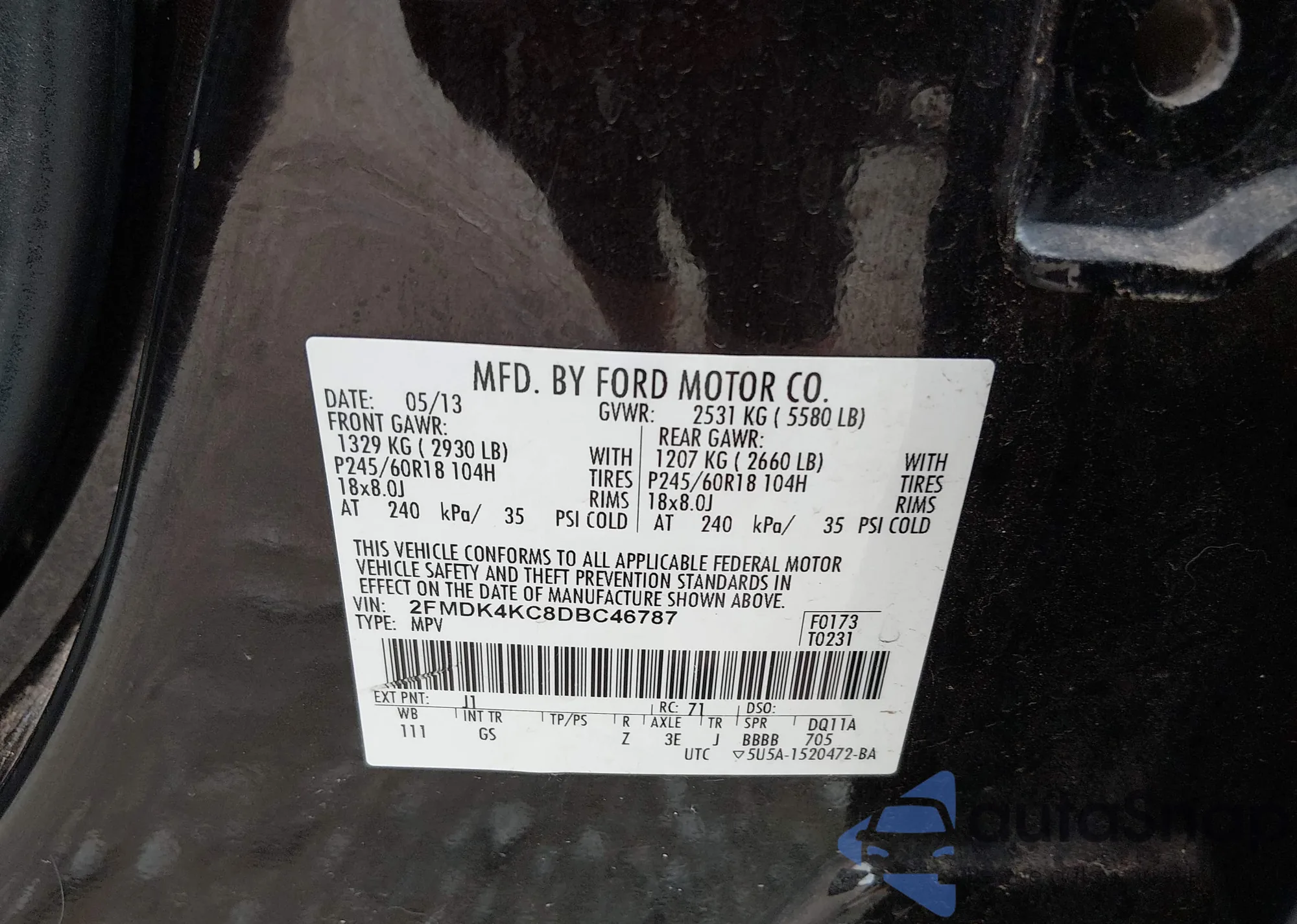 VIN: 2FMDK4KC8DBC46787