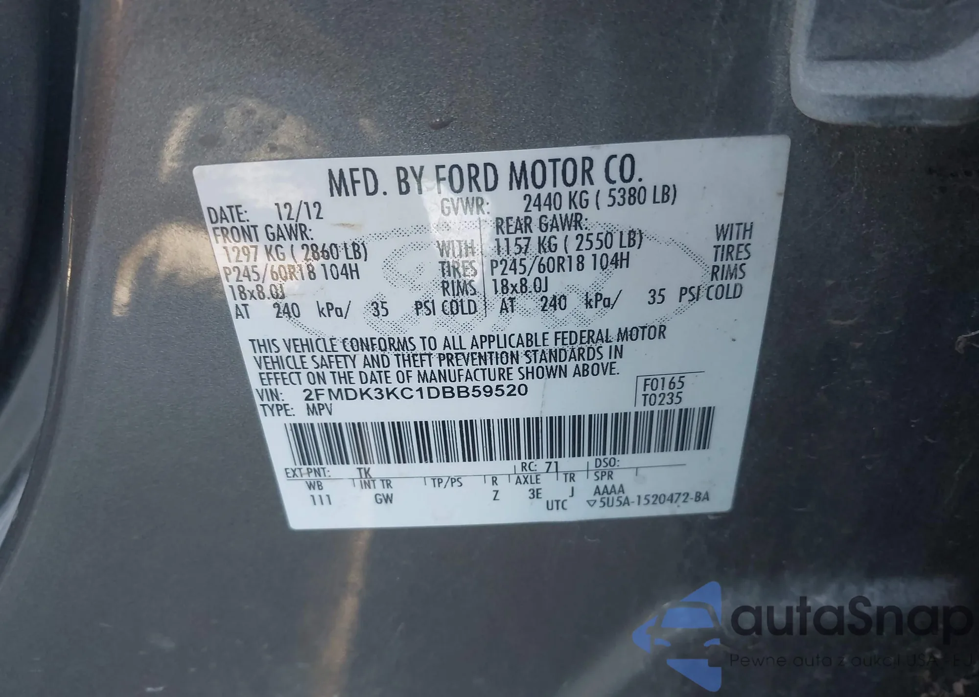 VIN: 2FMDK3KC1DBB59520