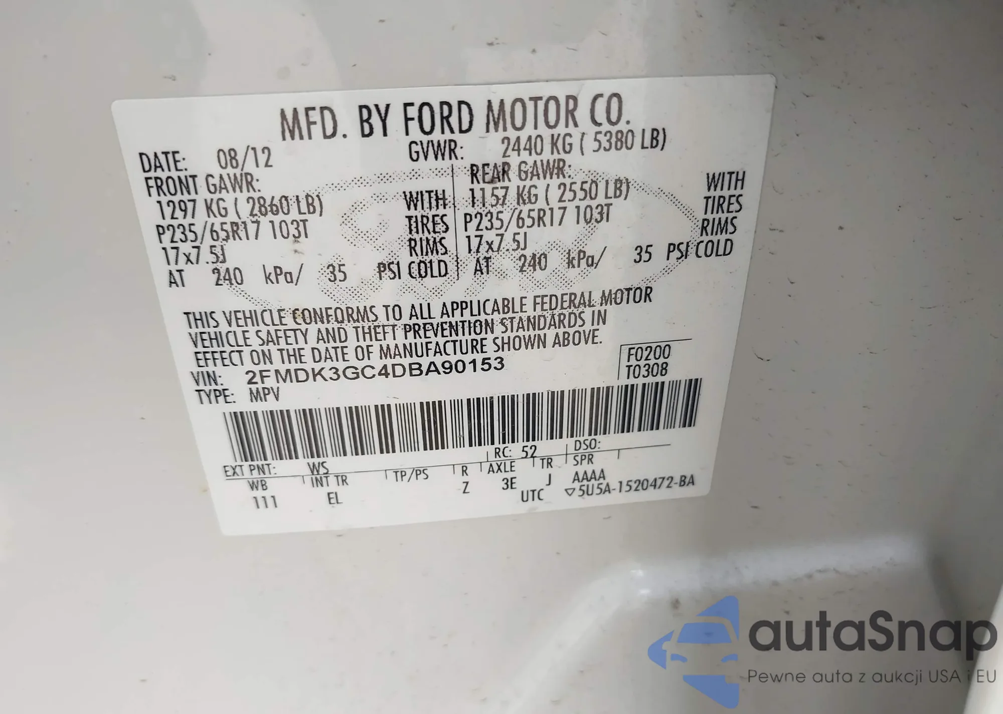 VIN: 2FMDK3GC4DBA90153