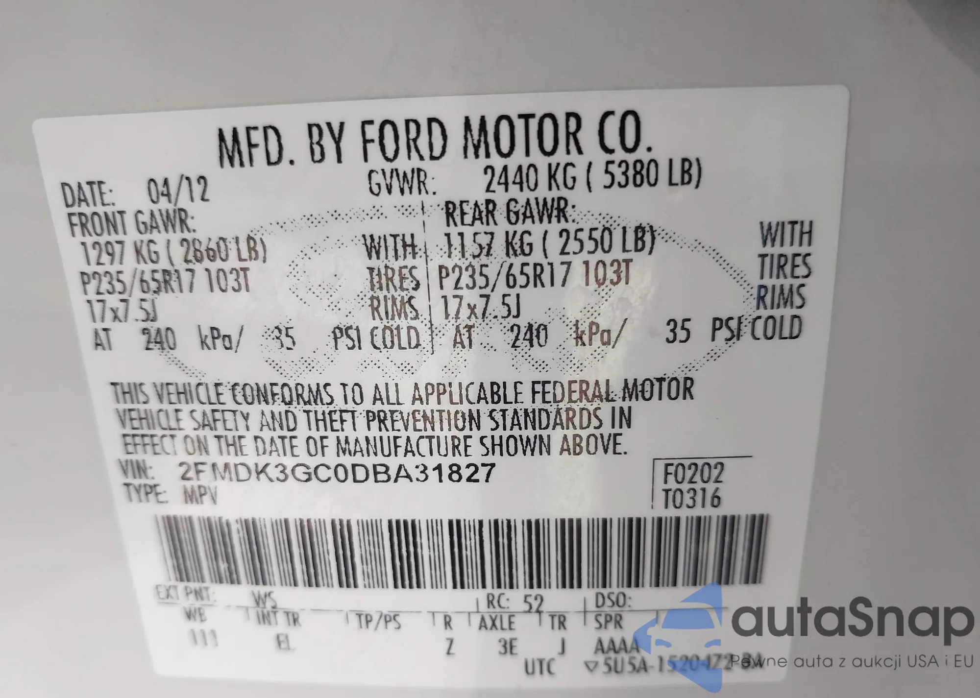 Samochód Ford Edge 2013 (VIN 2FMDK3GC0DBA31827) nie był wcześniej licytowany. Dokumenty są czyste, przebieg odpowiada lub jest niższy niż średnia rynku. Sprzedaje go firma ubezpieczeniowa – polecamy zakup. Dostawa do portu zajmie ok. 6–8 tygodni.