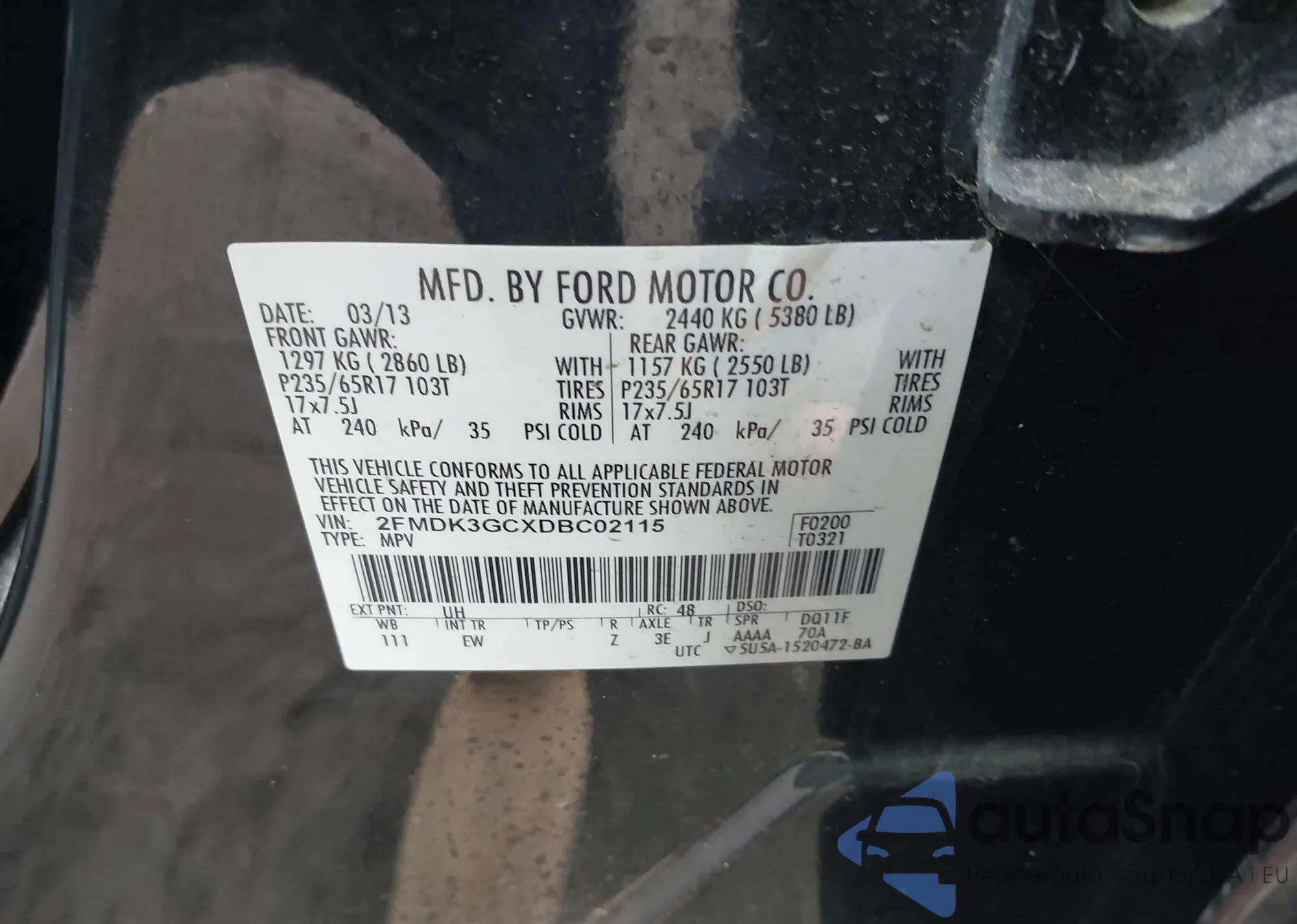 • VIN: 2FMDK3GCXDBC02115