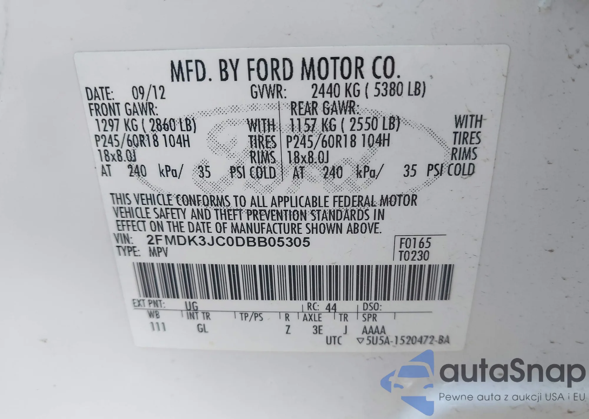 Samochód Ford Edge 2013 (VIN 2FMDK3JC0DBB05305) nie był wcześniej licytowany. Dokumenty są czyste, przebieg odpowiada lub jest niższy niż średnia rynku. Sprzedaje go firma ubezpieczeniowa – polecamy zakup. Dostawa do portu zajmie ok. 6–8 tygodni.