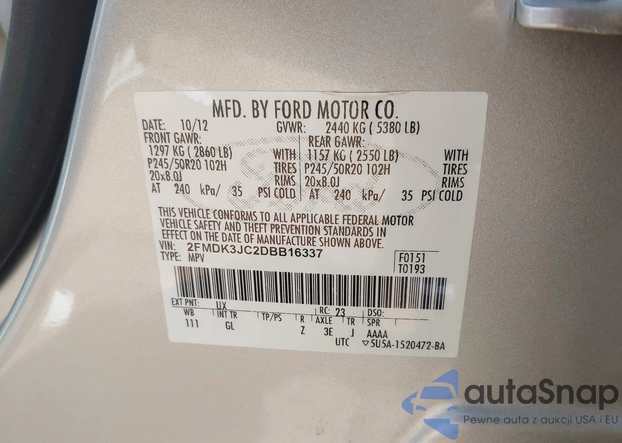 VIN: 2FMDK3JC2DBB16337