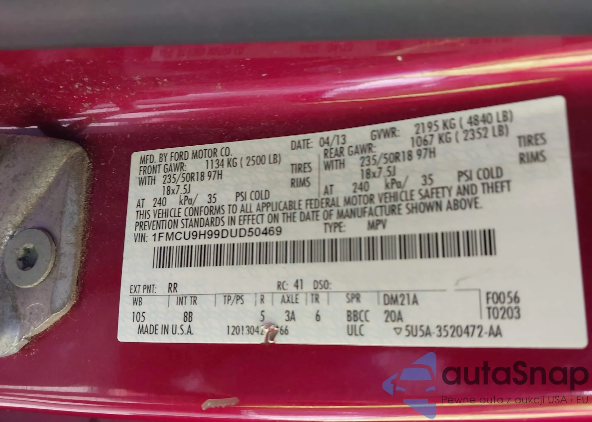 VIN: 1FMCU9H99DUD50469