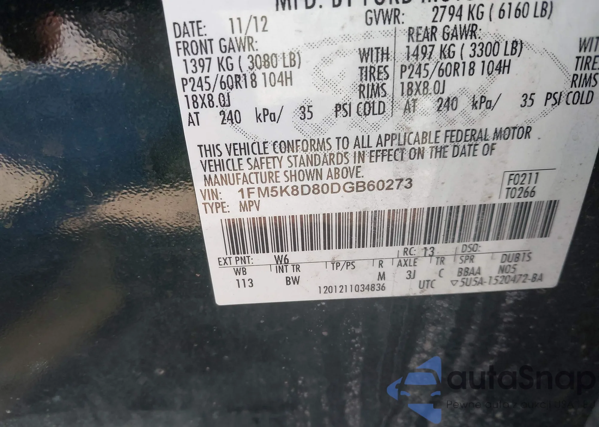 Samochód Ford Explorer 2013 (VIN 1FM5K8D80DGB60273) nie był wcześniej licytowany. Dokumenty są czyste, przebieg odpowiada lub jest niższy niż średnia rynku. Sprzedaje go firma ubezpieczeniowa – polecamy zakup. Dostawa do portu zajmie ok. 6–8 tygodni.