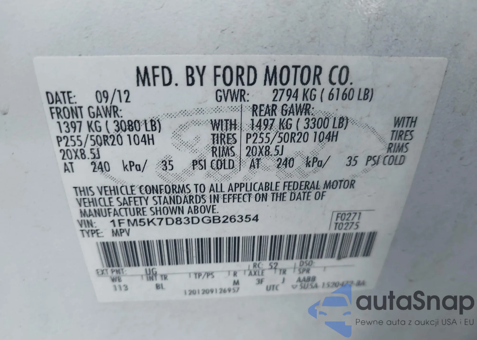 • VIN: 1FM5K7D83DGB26354